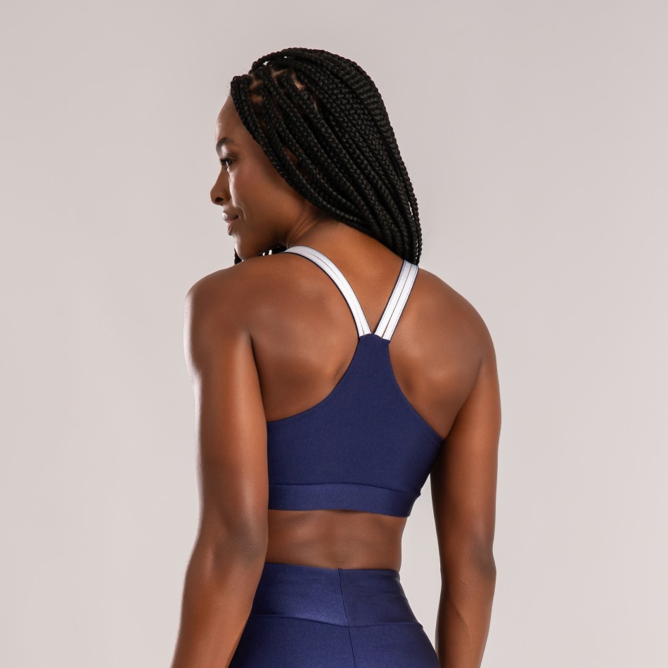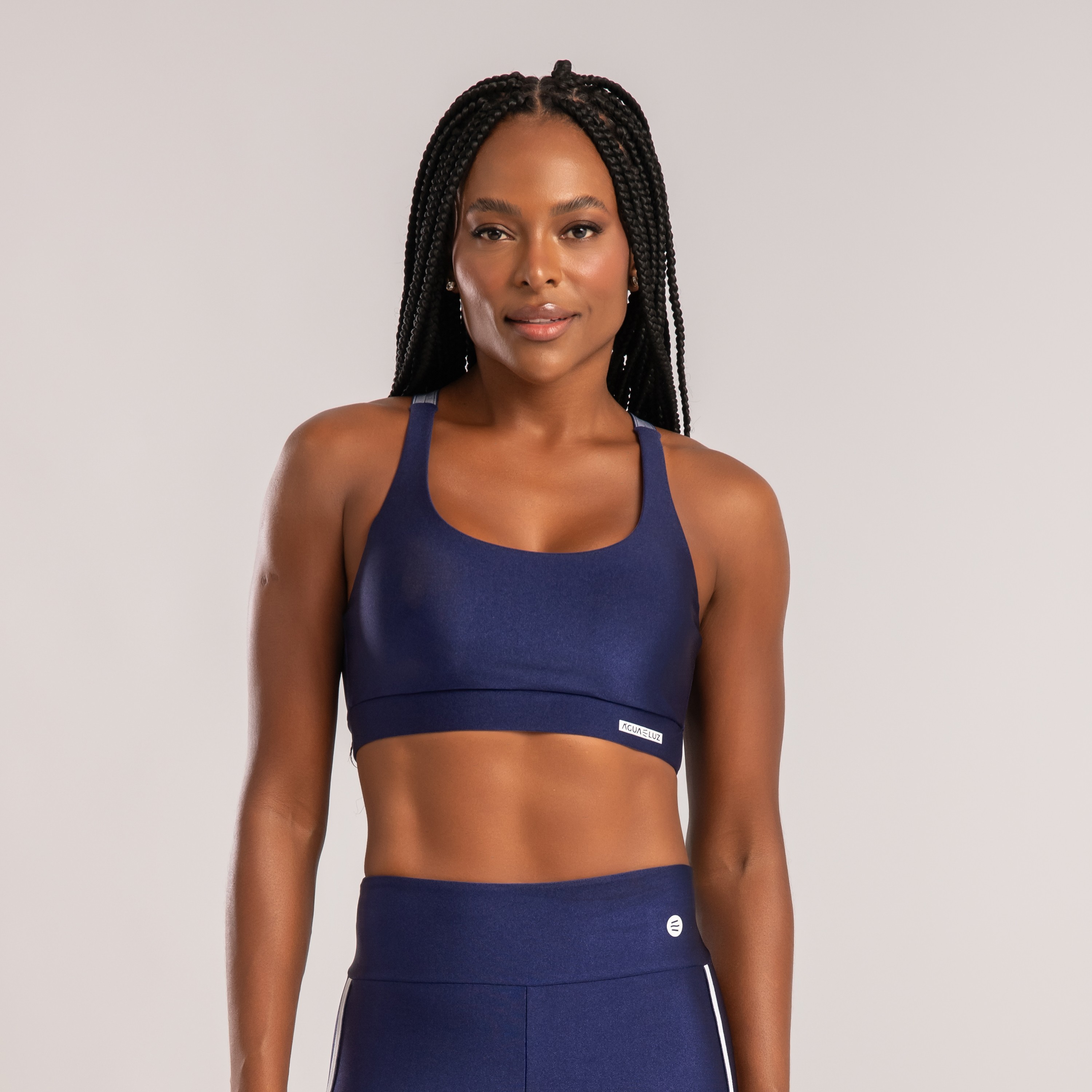 Desenvolvido para unir estilo, conforto e segurança em cada movimento, este top em poliamida de alta qualidade oferece excelente sustentação, sendo ideal para treinos de média e alta intensidade. As alças duplas em elástico garantem firmeza ao vestir, sem marcar a pele, além de acrescentarem um visual moderno e funcional. O tom azul marinho traz versatilidade e sofisticação ao look fitness, tornando a peça perfeita tanto para treinos quanto para composições esportivas cheias de estilo.