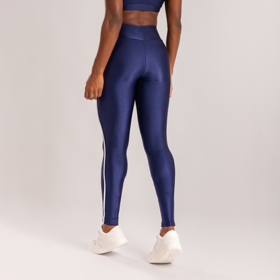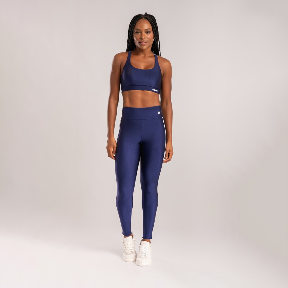 A calça legging azul marinho em poliamida com detalhe em elástico une conforto, estilo e liberdade de movimento em uma peça versátil e moderna.