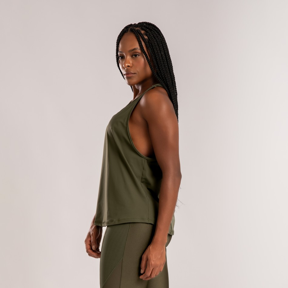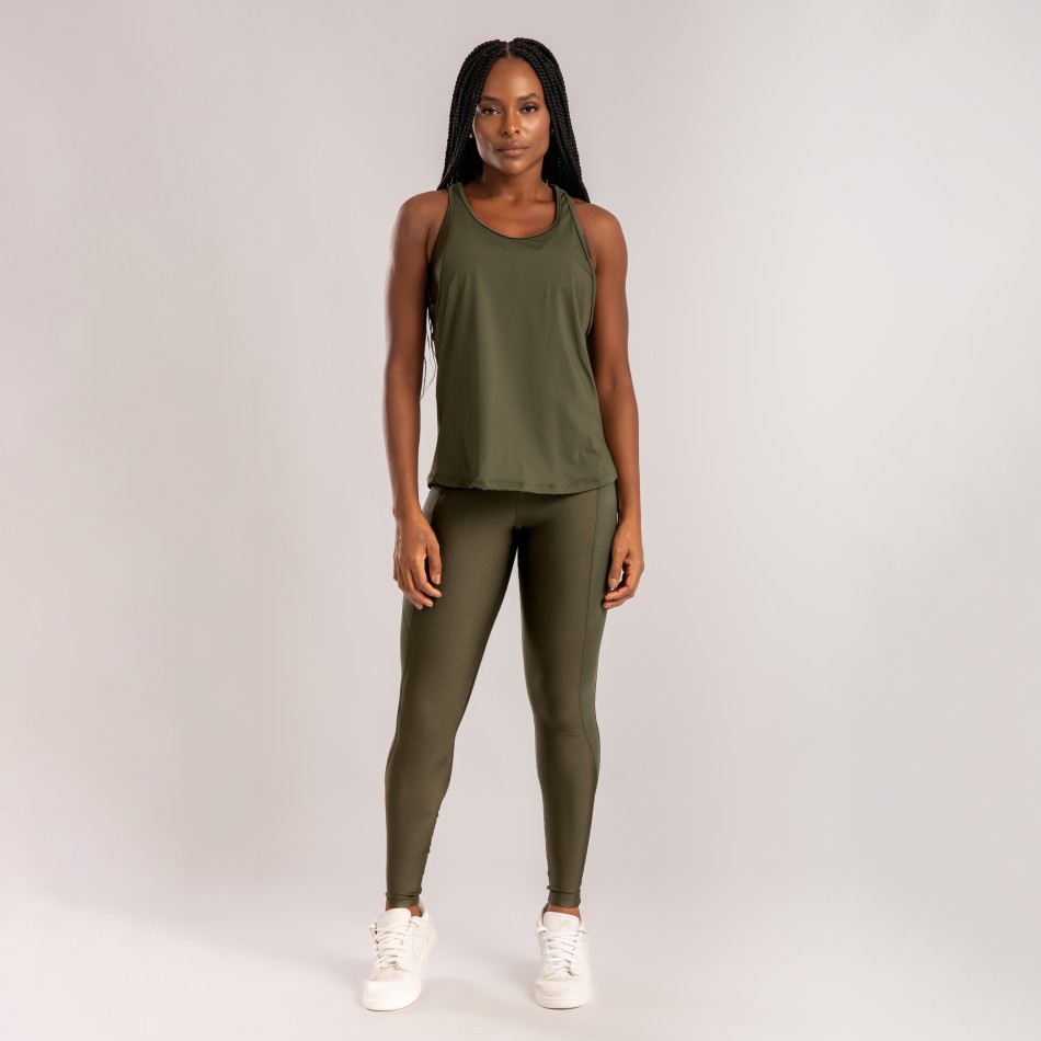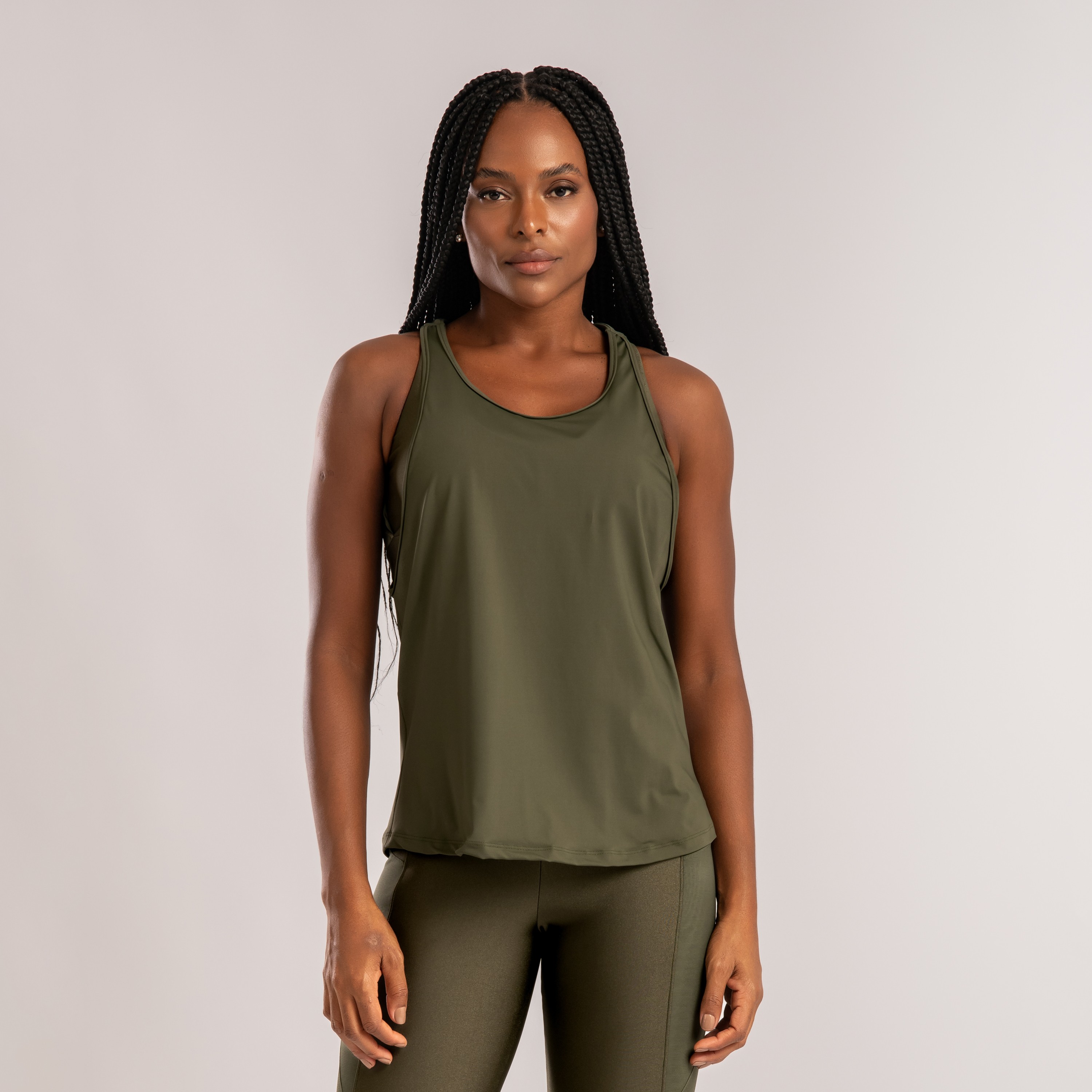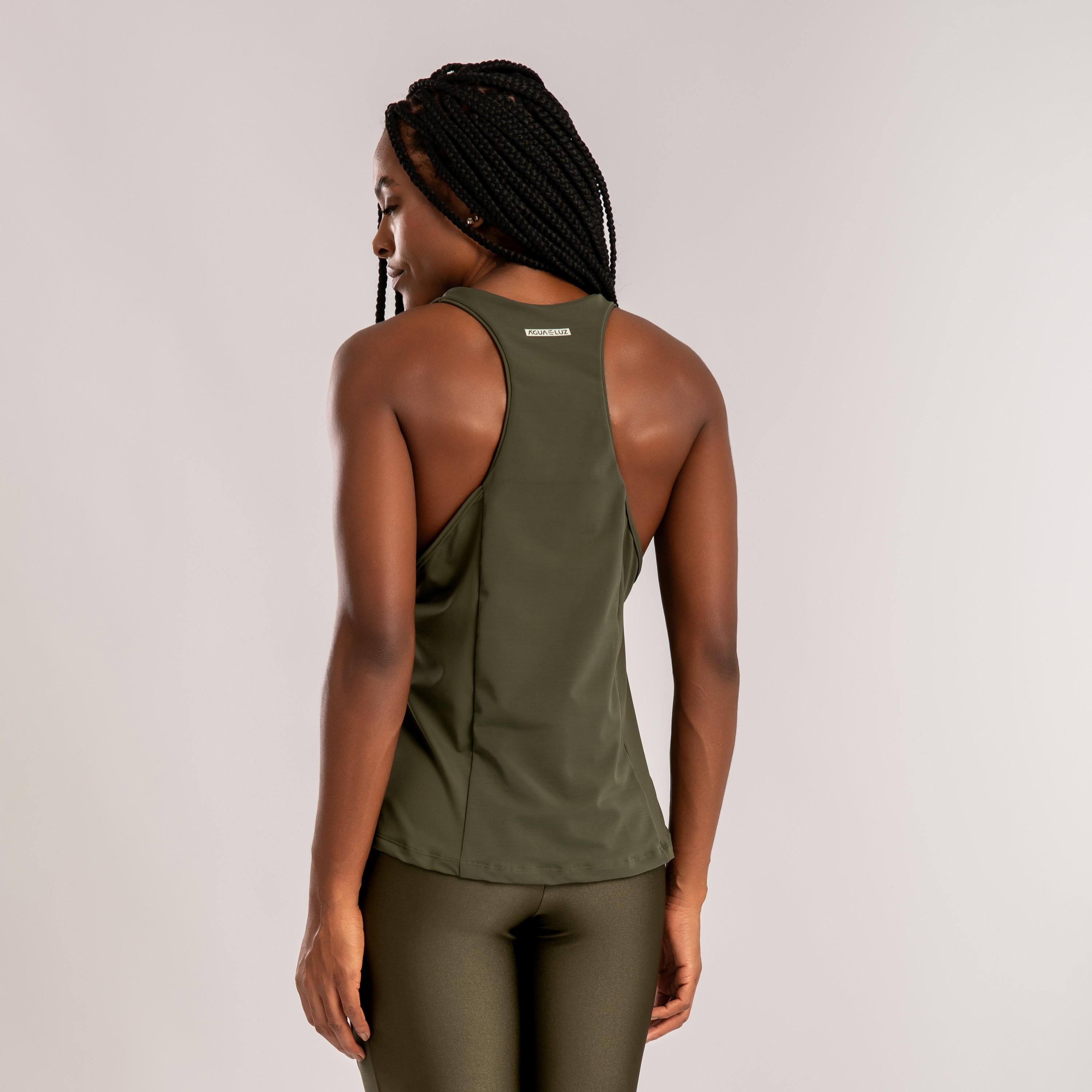 Regata em poliamida na cor verde escuro, com detalhe em tule que proporciona respirabilidade, leveza e um visual moderno. Possui toque macio e caimento impecável, garantindo conforto e liberdade de movimentos. Ideal para treinos ou para compor looks práticos e estilosos no dia a dia.