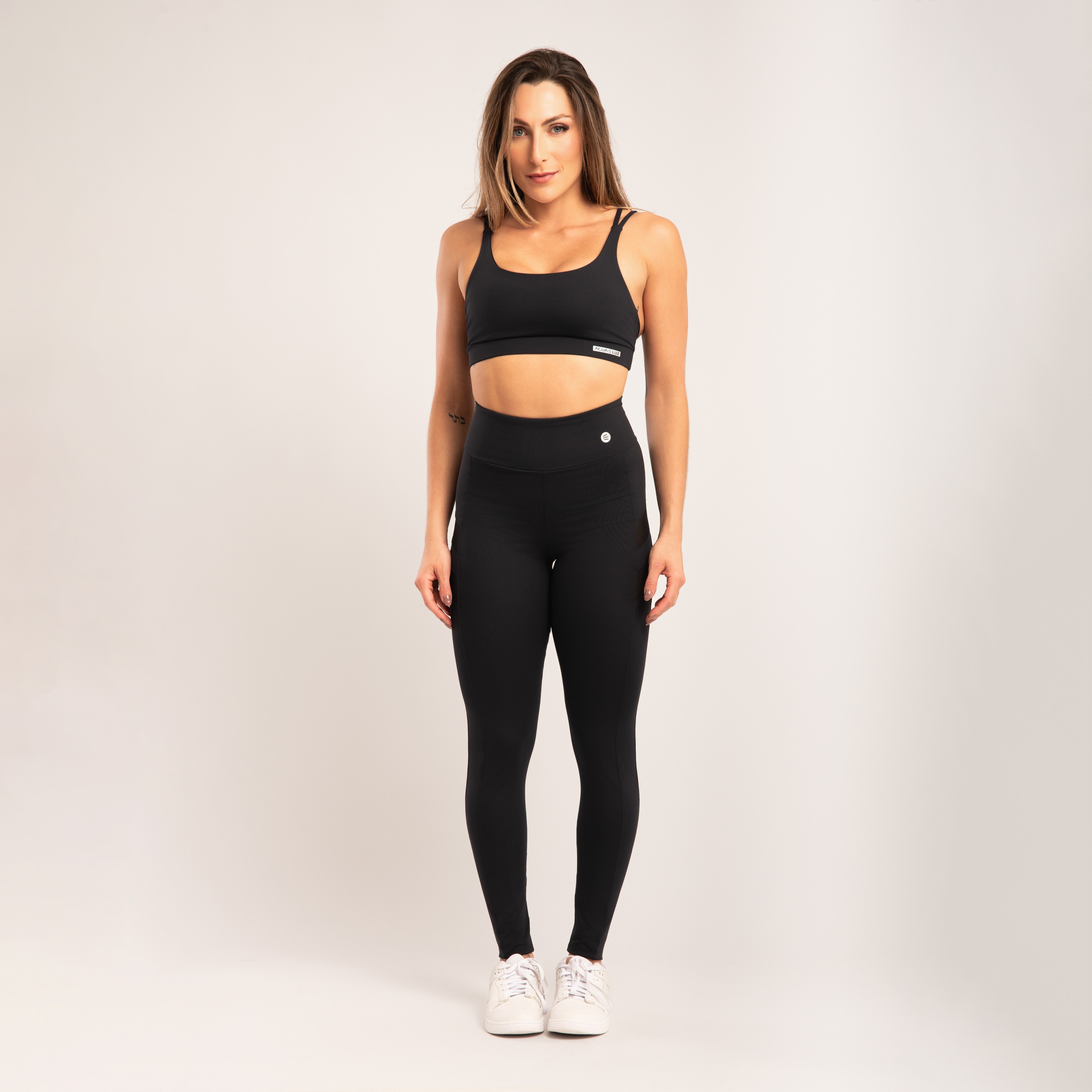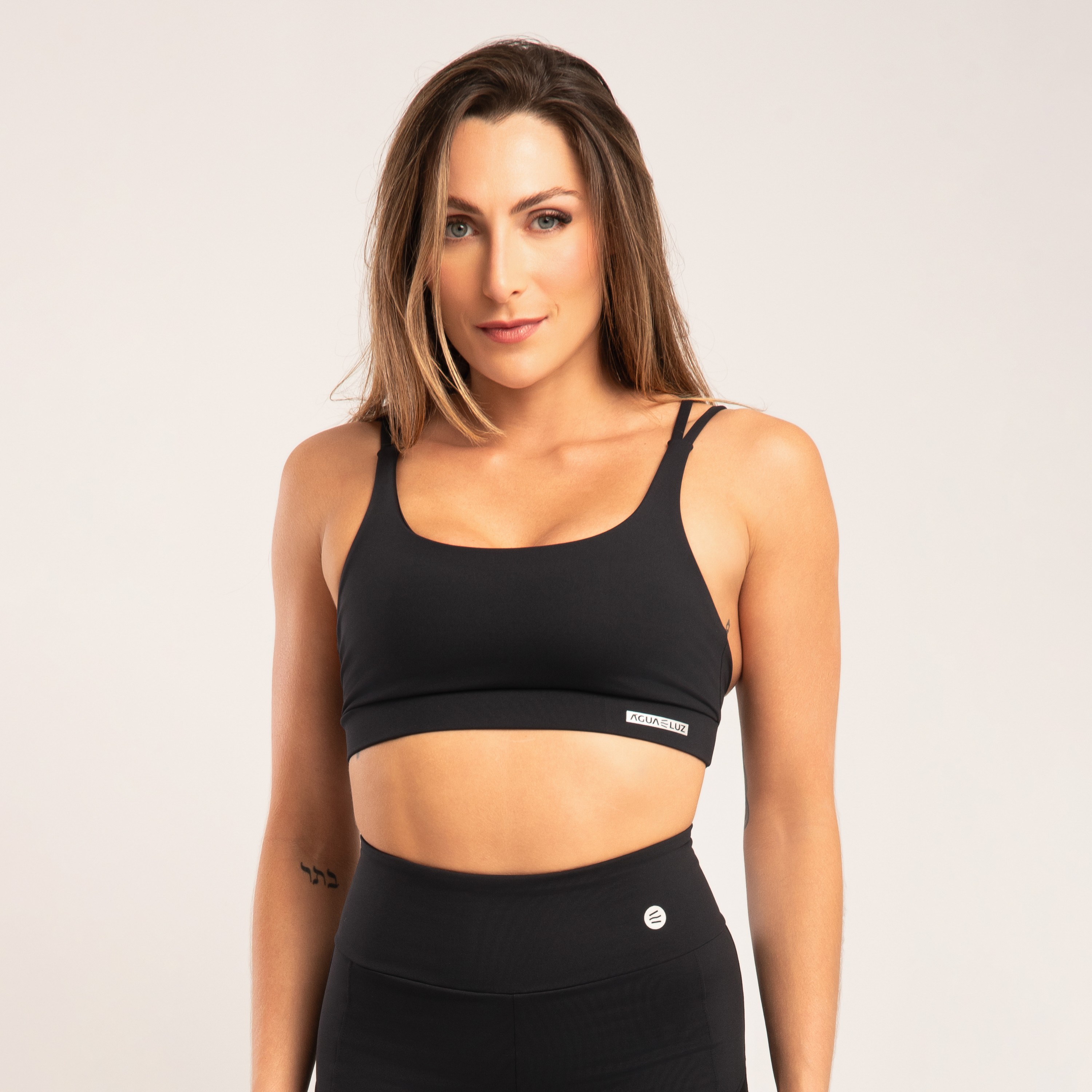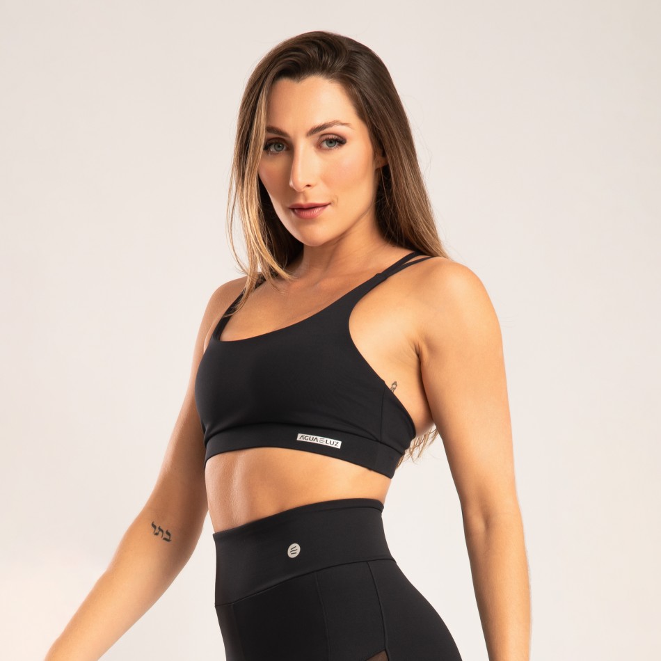 Com design tipo camiseta e alça dupla, este top preto entrega sustentação confortável com um visual moderno e versátil. A modelagem oferece maior cobertura e segurança no uso, enquanto a poliamida opaca garante toque macio, secagem rápida e excelente ajuste ao corpo. Possui bojo removível, permitindo adaptação conforme a preferência, ideal para treinos ou para compor looks do dia a dia.