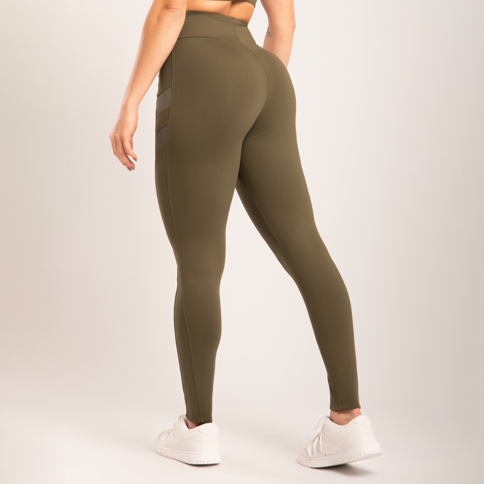 Com recorte em tule, essa calça legging verde oliva combina estilo e funcionalidade em uma proposta moderna e elegante. Confeccionada em poliamida opaca, oferece toque macio, secagem rápida e excelente ajuste ao corpo. A cintura alta garante conforto e segurança durante o uso, enquanto o detalhe em tule adiciona leveza e personalidade à peça, ideal para treinos ou para produções versáteis do dia a dia.