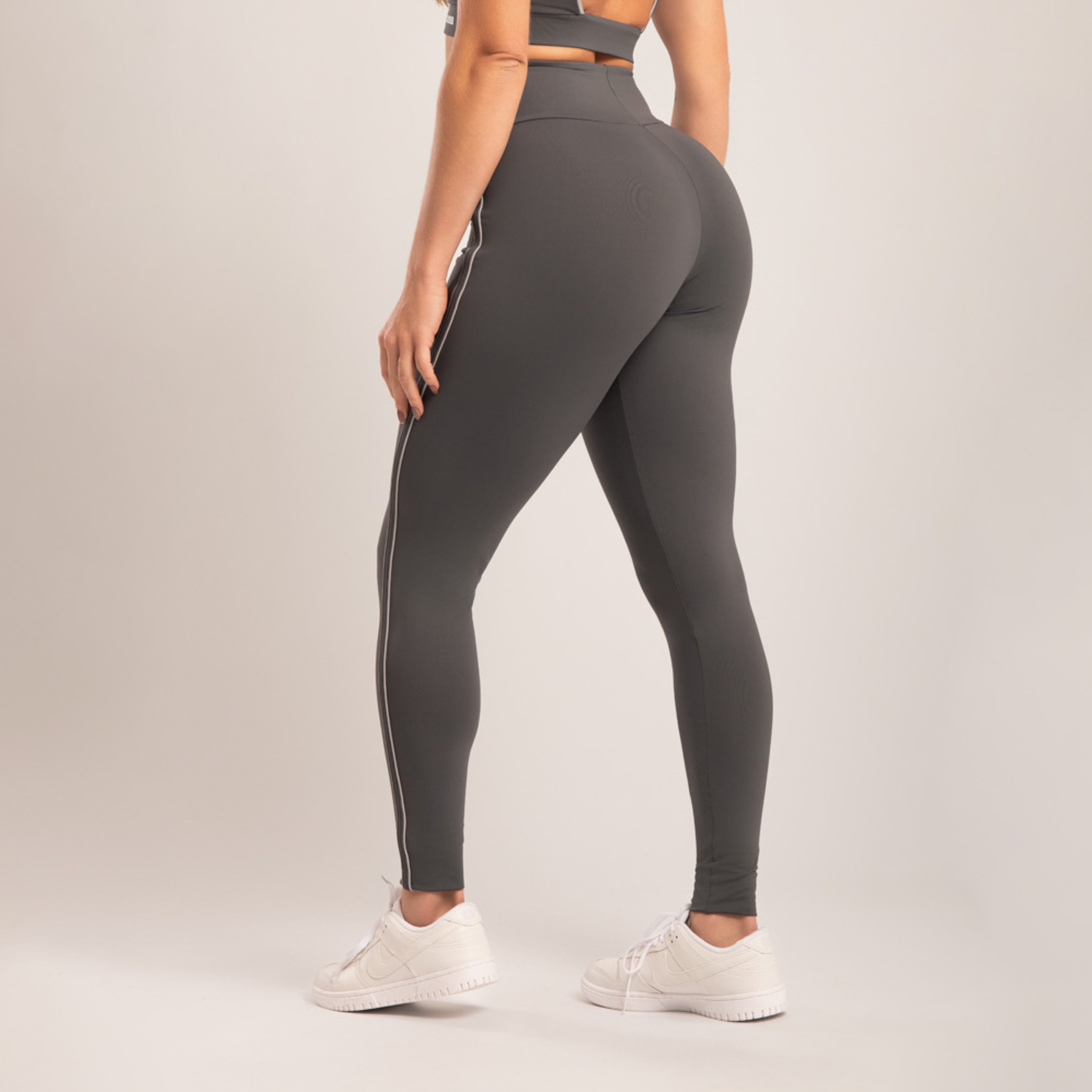 A calça legging cinza níquel com detalhe cinza claro une impacto visual e funcionalidade em um design moderno e elegante. Confeccionada em poliamida opaca, oferece toque macio, respirabilidade e secagem rápida. A cintura alta garante conforto e segurança durante o uso, enquanto o detalhe bicolor valoriza a silhueta com estilo, ideal para treinos ou para composições versáteis no dia a dia.