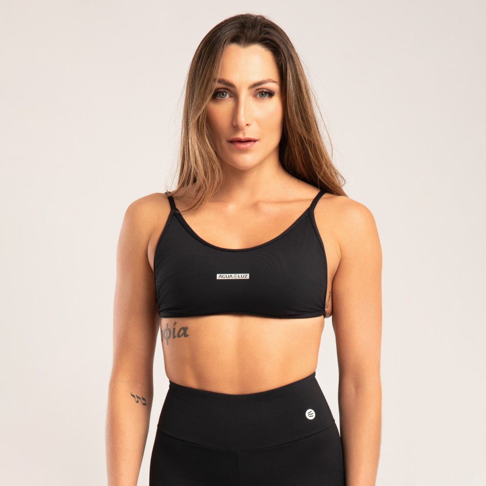 Desenvolvido para se ajustar ao seu corpo, este top preto em poliamida comfort possui alças e costas reguláveis, garantindo liberdade de movimento e segurança no uso. O design versátil é ideal para atividades de baixo impacto, oferecendo conforto no dia a dia. Conta com bojo removível, tecido opaco de toque macio, secagem rápida e proteção UV50+, unindo praticidade e bem-estar em uma peça essencial.