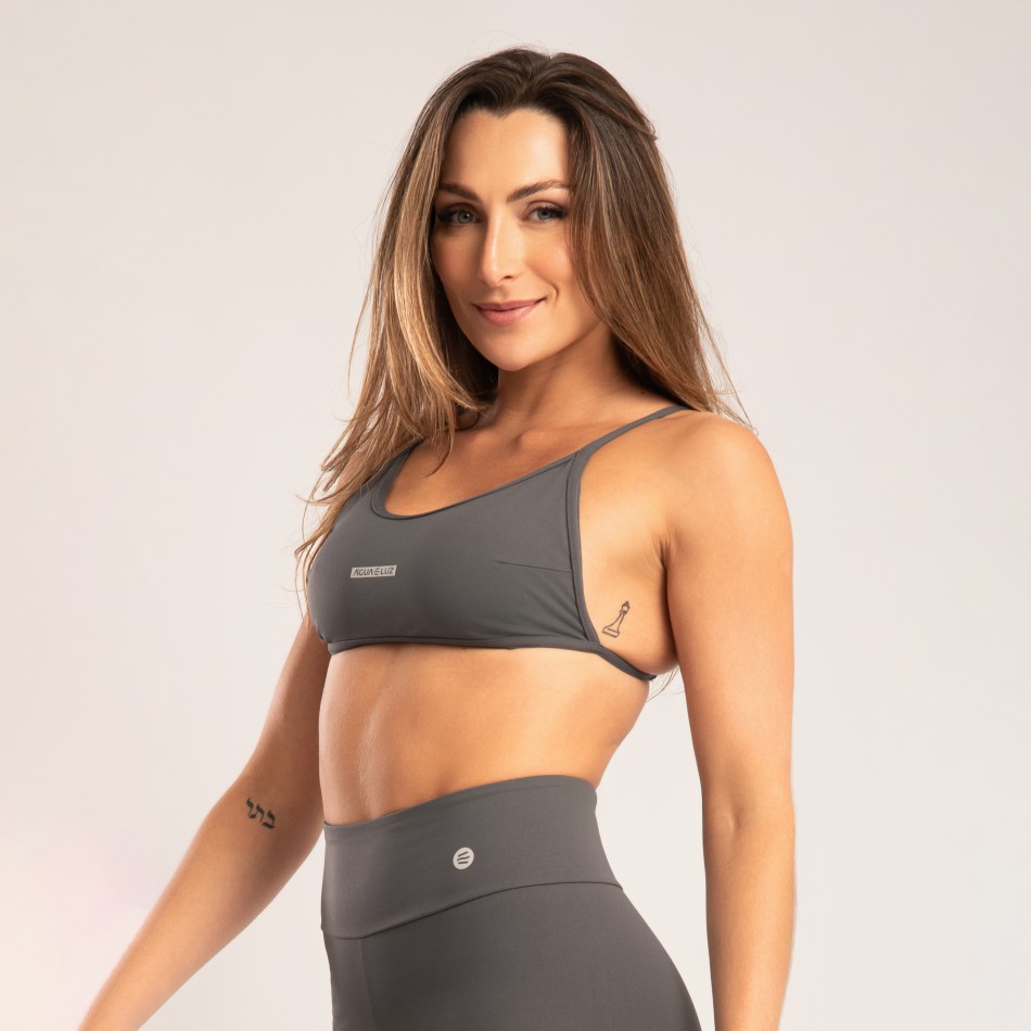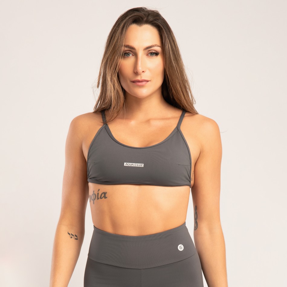 Desenvolvido para se ajustar ao seu corpo, este top cinza níquel em poliamida comfort conta com alças e costas reguláveis, garantindo liberdade de movimento e segurança no uso. O design versátil é ideal para atividades de baixo impacto, oferecendo conforto no dia a dia. Possui bojo removível e tecido opaco com toque macio, secagem rápida e proteção UV50+, unindo funcionalidade e bem-estar.
