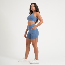 Short fitness confeccionado em poliamida de alta qualidade, oferecendo conforto, durabilidade e excelente ajuste ao corpo. Na cor azul sereno, possui design moderno com bolso unilateral funcional, ideal para atividades físicas ou para o dia a dia.