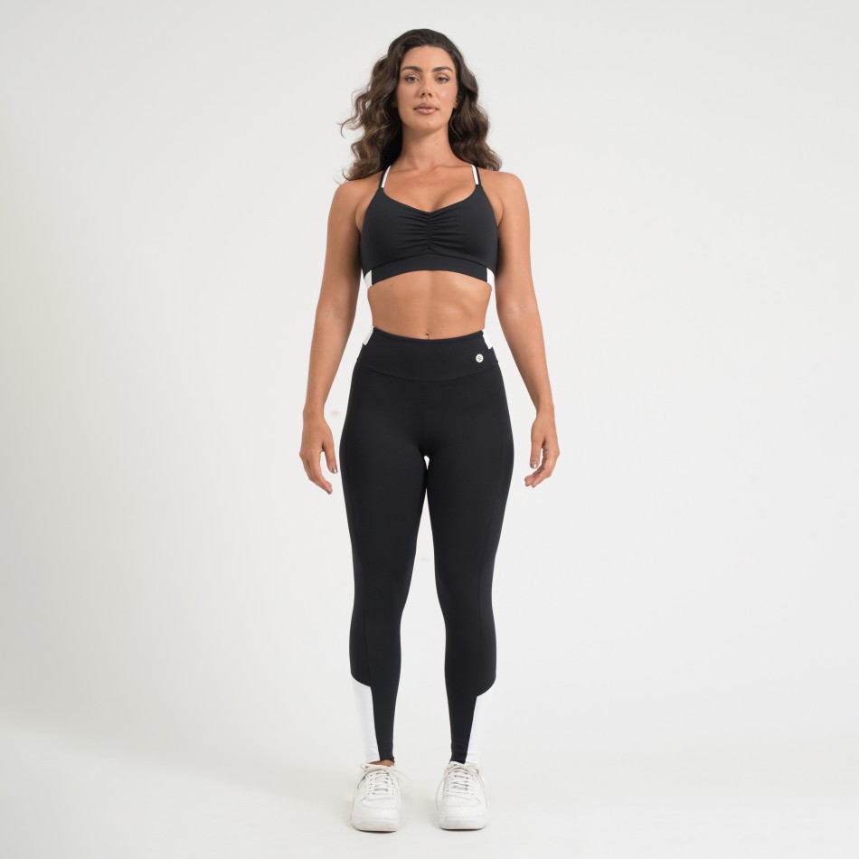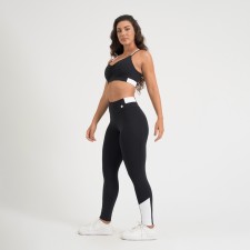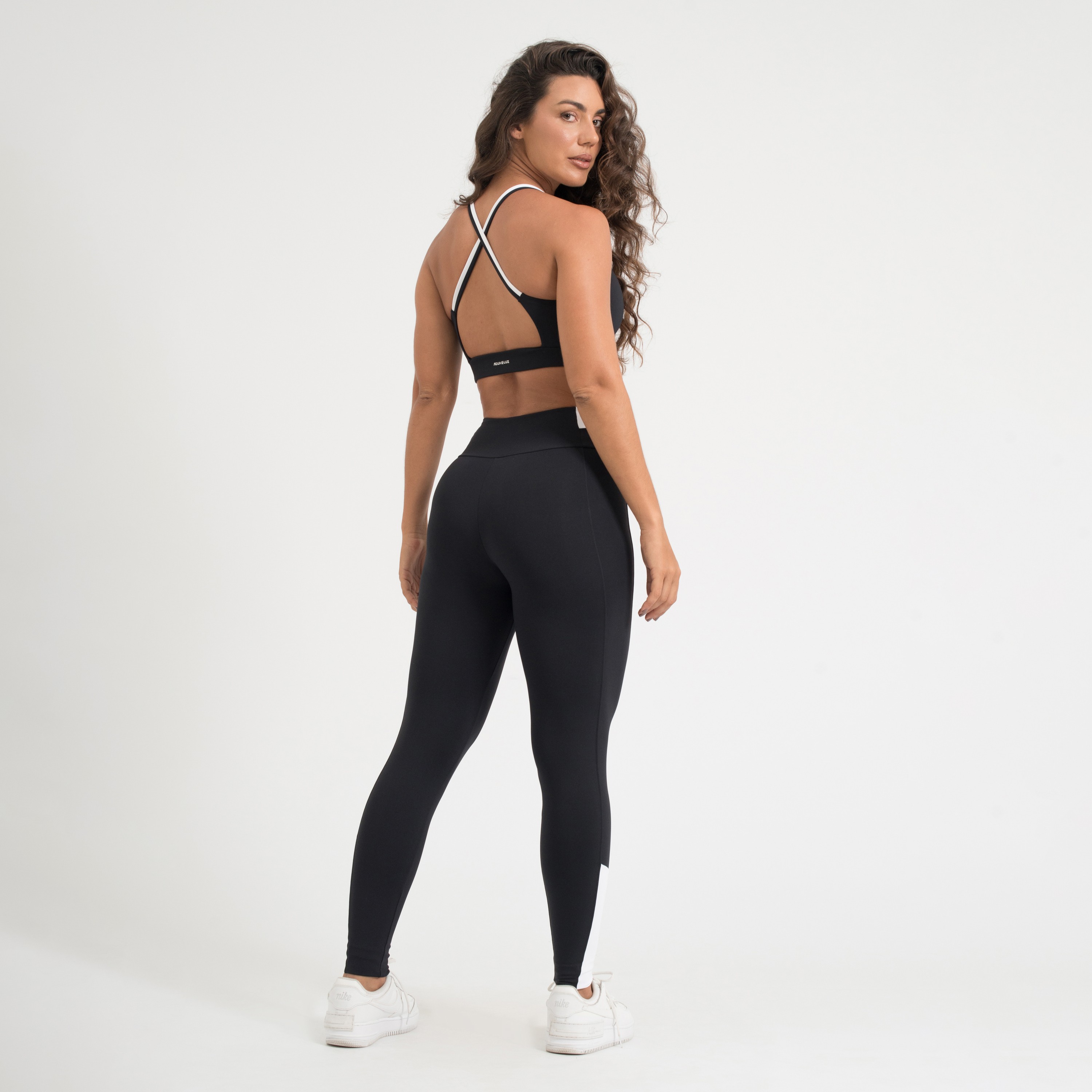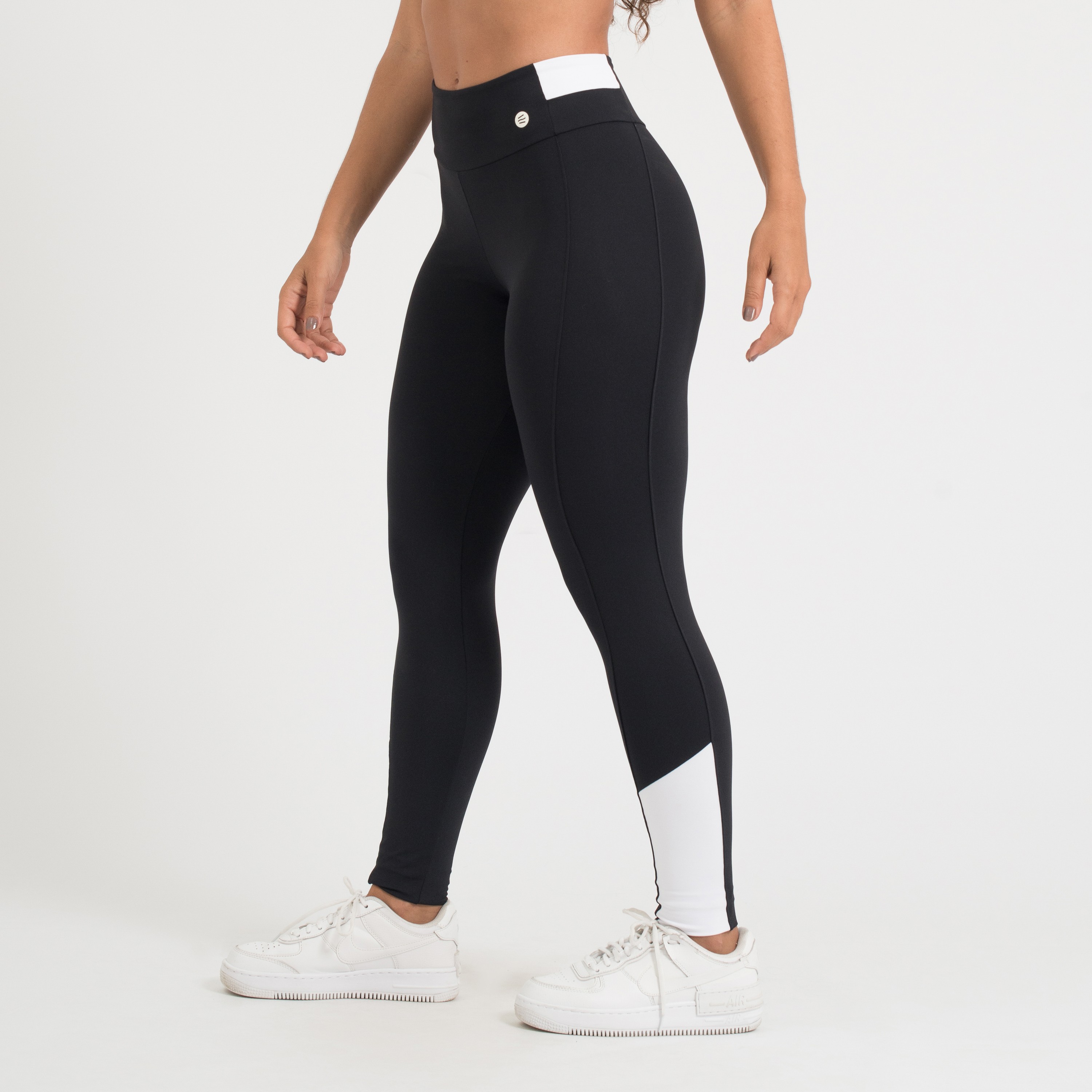 Calça legging fitness confeccionada em poliamida Comfort de alta qualidade, oferecendo excelente elasticidade, suporte e liberdade total de movimento. Com design moderno em preto e branco, é ideal para treinos ou para o uso no dia a dia.