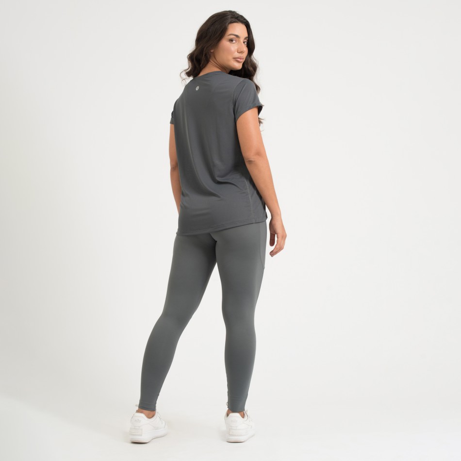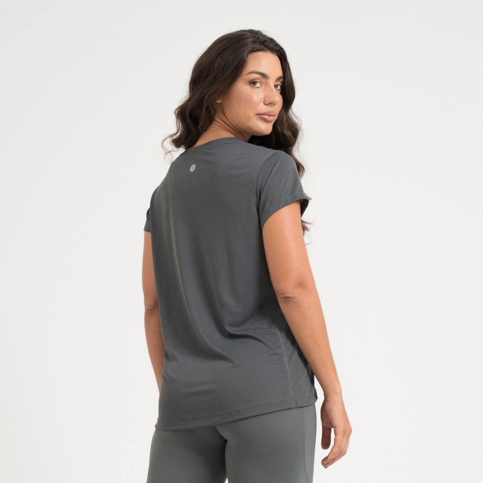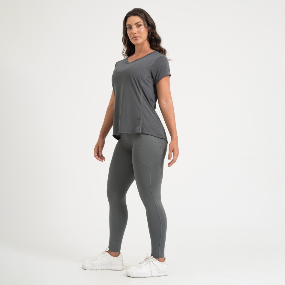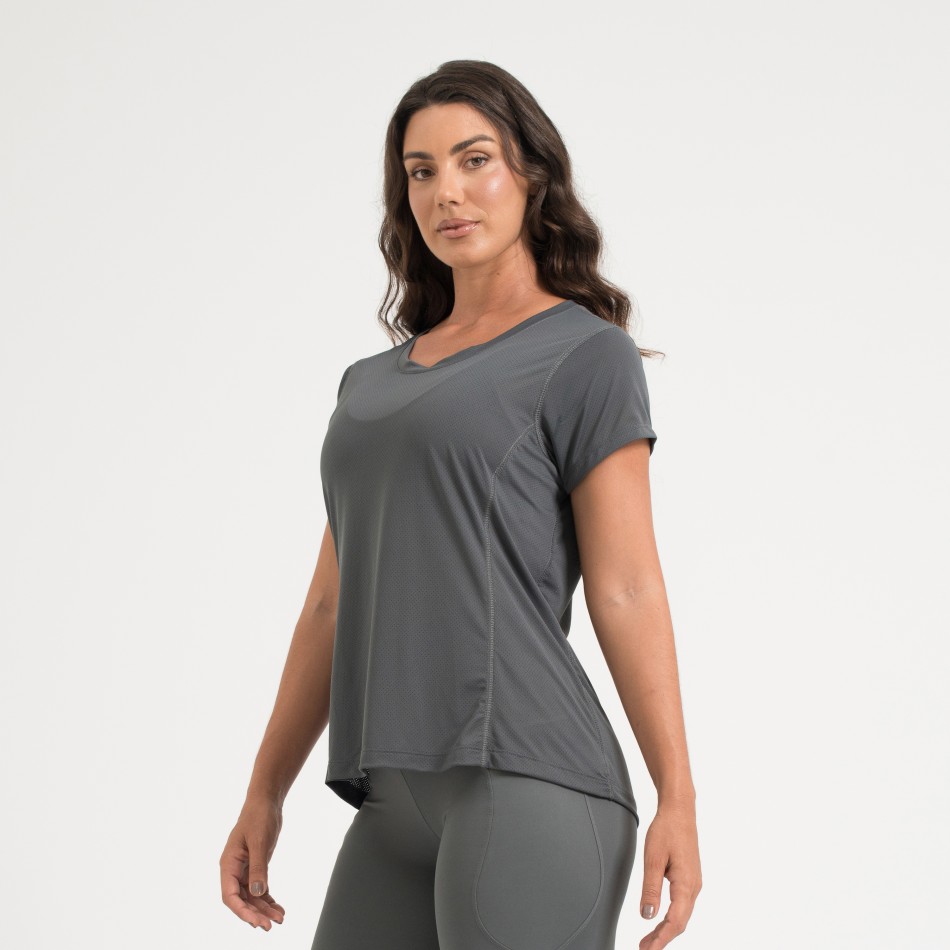 Camiseta fitness confeccionada em poliamida Dry de alta qualidade, oferecendo toque macio, leveza e excelente respirabilidade. Com recorte na cor cinza níquel, possui design versátil e confortável, ideal para treinos ou uso no dia a dia.