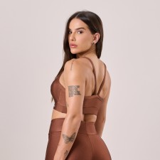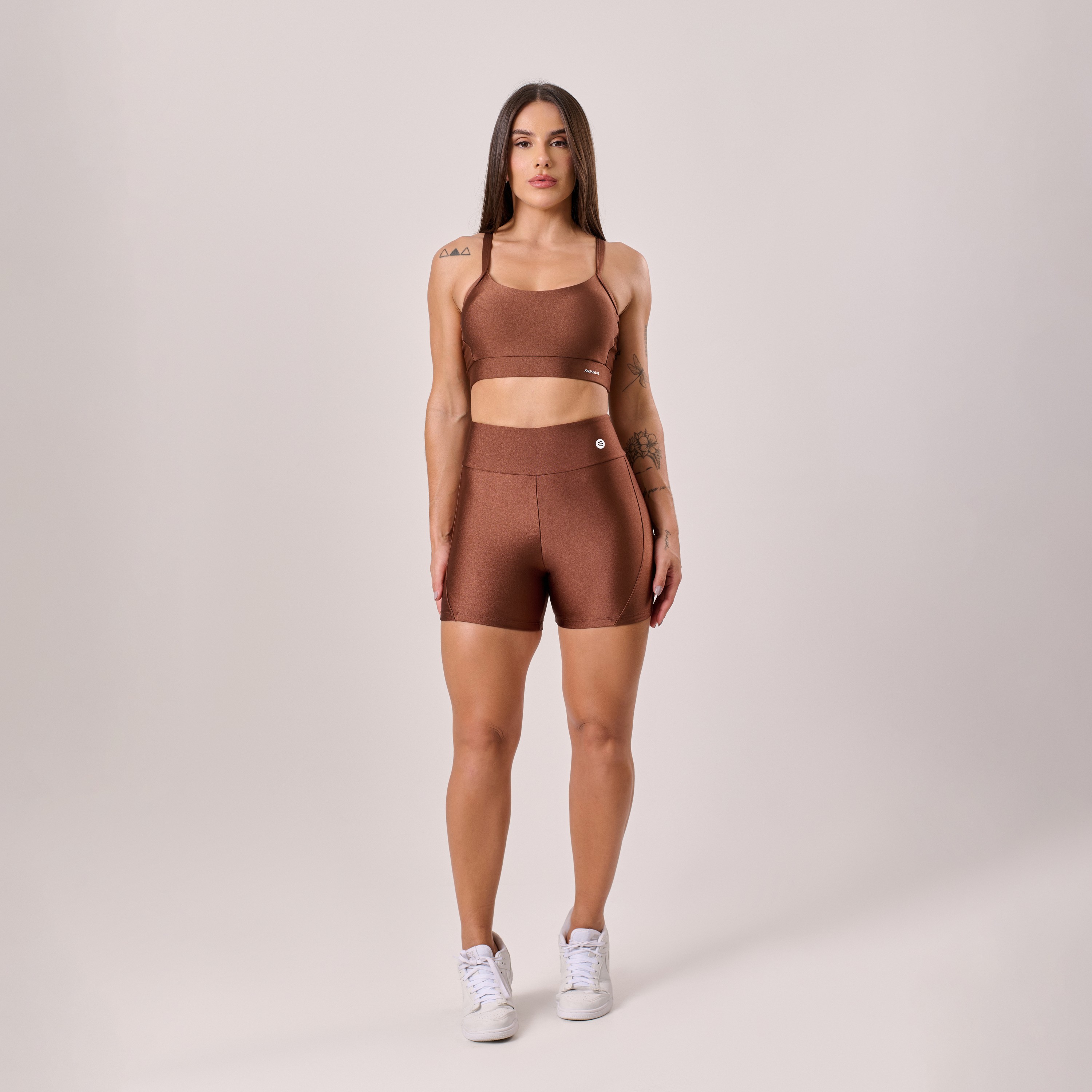 Na cor Marrom Cocoa, o modelo traz um visual moderno e sofisticado, ideal para quem busca unir estilo, conforto e sustentação em uma única peça — perfeita tanto para o treino quanto para o dia a dia.