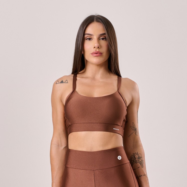 Na cor Marrom Cocoa, o modelo traz um visual moderno e sofisticado, ideal para quem busca unir estilo, conforto e sustentação em uma única peça — perfeita tanto para o treino quanto para o dia a dia.