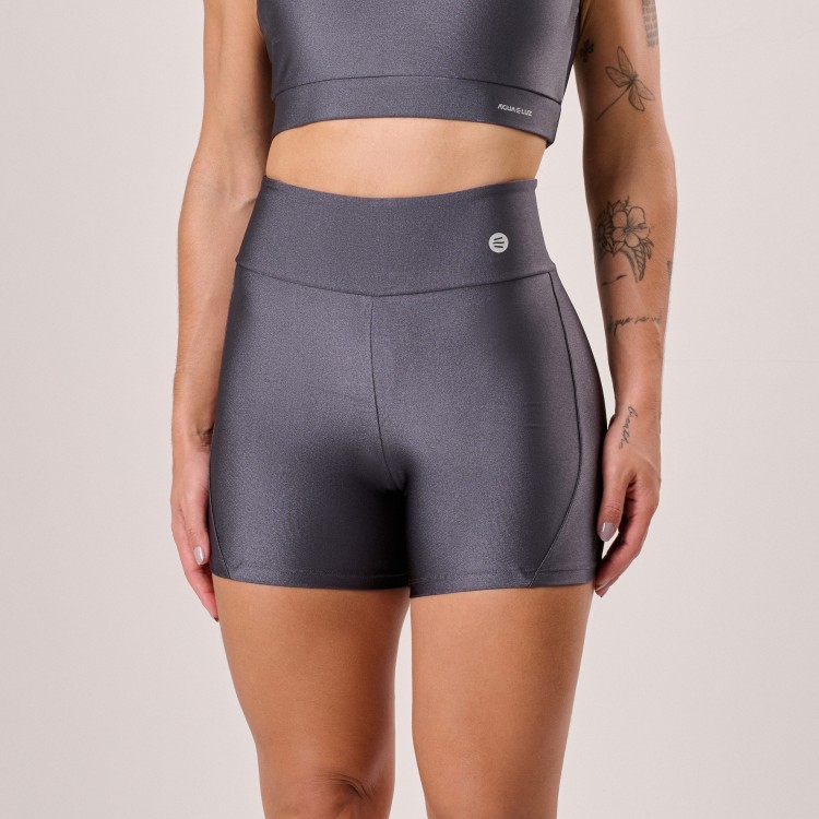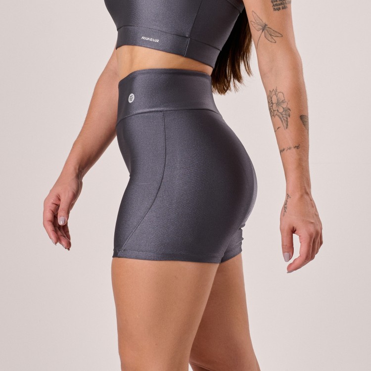 O short para academia em poliamida na cor cinza titânio veste com firmeza graças ao cós anatômico, oferecendo conforto e liberdade de movimento para treinos de musculação, funcional e uso no dia a dia. O recorte valoriza o caimento e o tecido com respirabilidade proporciona sensação leve durante os exercícios.