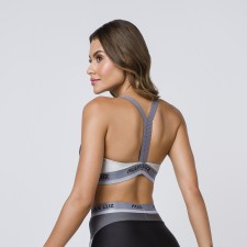 As alças em elástico canelado cinza adicionam um toque moderno e diferenciado ao visual, enquanto o cós personalizado reforça o design exclusivo da peça, garantindo sustentação e conforto. Um top versátil, funcional e cheio de estilo para compor produções fitness ou athleisure.