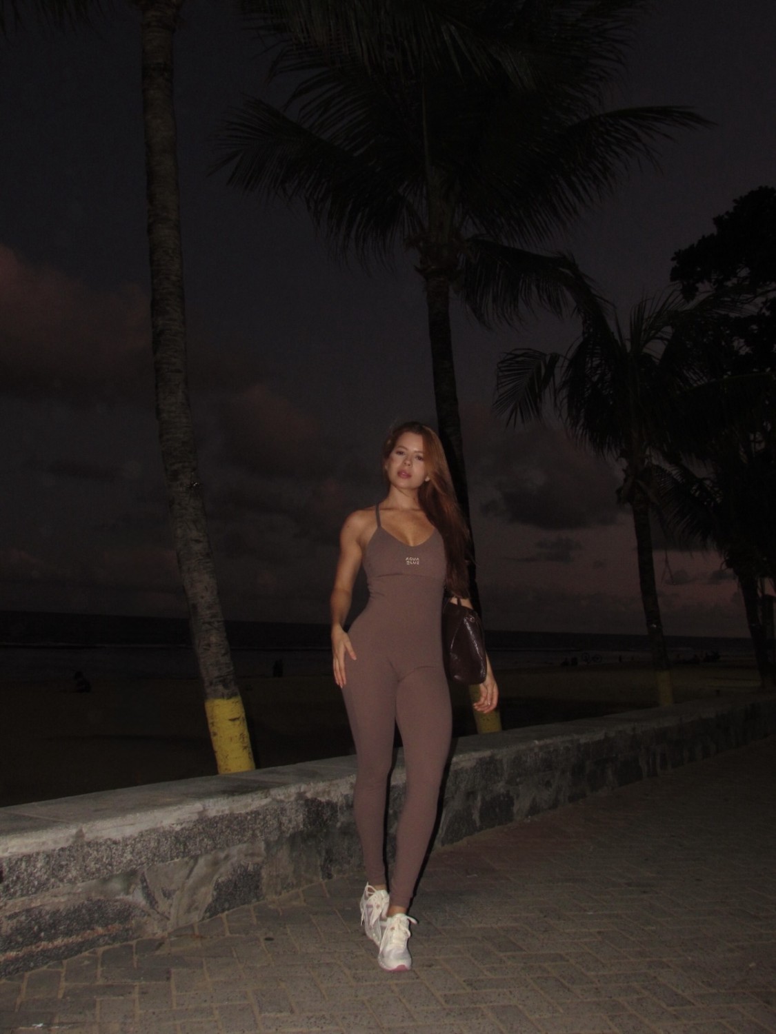O Macacão Castanho com Alça Cruzada une praticidade, conforto e elegância em uma única peça. Confeccionado em tecido macio e com excelente ajuste ao corpo, garante liberdade de movimentos. O design com alças cruzadas valoriza a silhueta, enquanto o bojo removível e as alças reguláveis oferecem praticidade. Versátil, é ideal para treinos ou looks casuais.