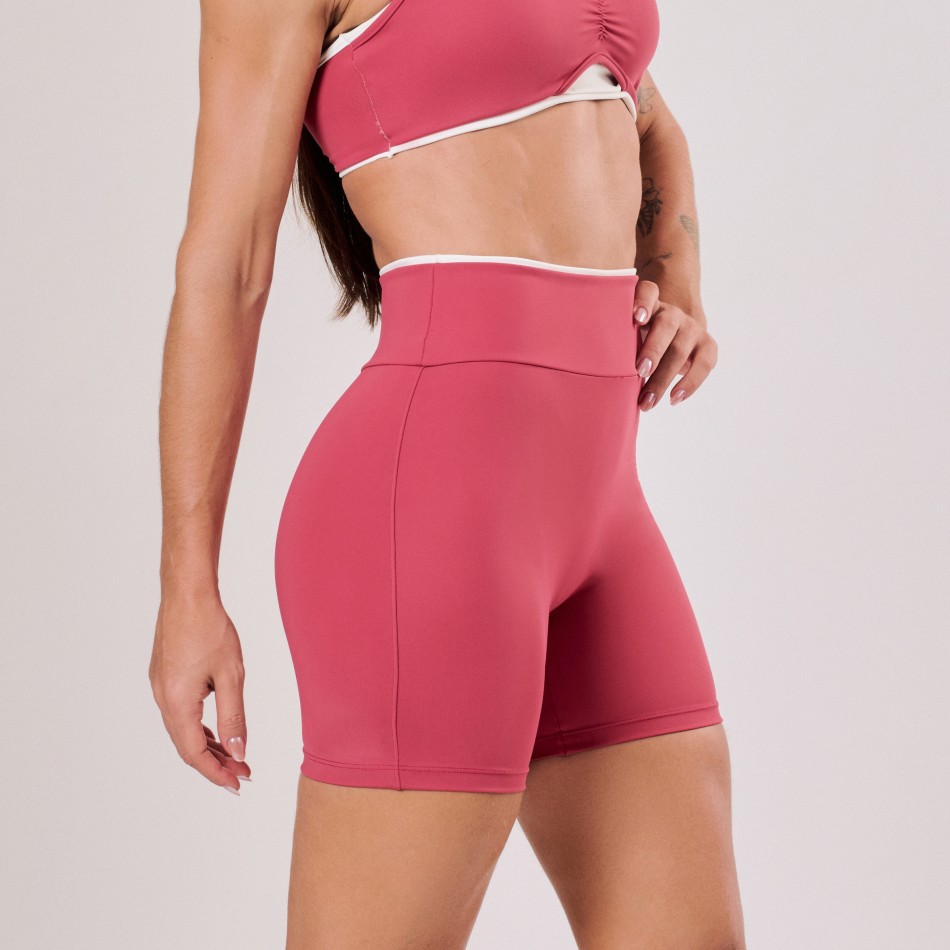 Com design moderno e toque sofisticado, o short na cor cereja se destaca pelo detalhe em off white, criando um contraste elegante e atual. Confeccionado em tecido macio e confortável, oferece ótimo ajuste ao corpo e liberdade de movimentos. Versátil, é ideal tanto para atividades físicas quanto para composições casuais cheias de estilo.