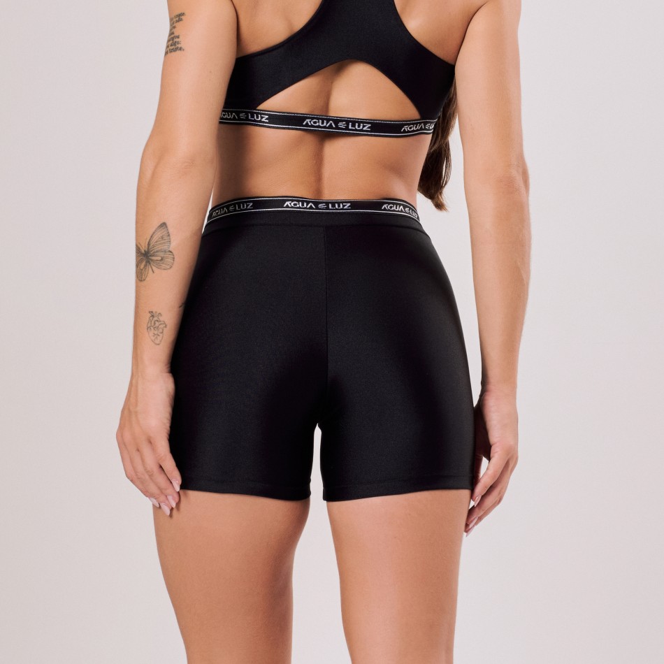 O Short Preto com Elástico Personalizado une conforto e estilo. O elástico personalizado garante ajuste seguro e valoriza o caimento.