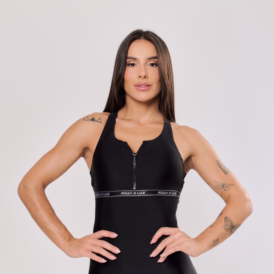 • Body Preto com Zíper e Elástico Personalizado