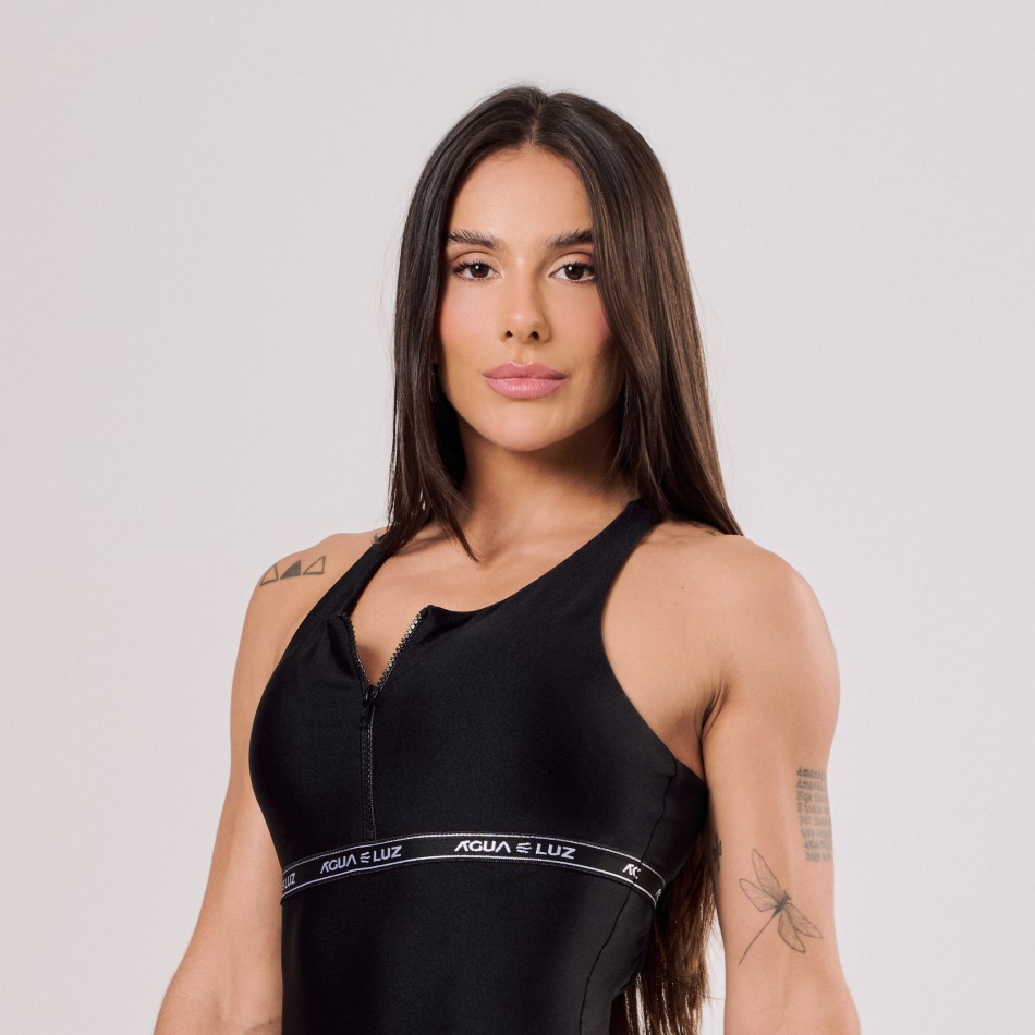 • Macaquinho Preto com Zíper e Elástico Personalizado