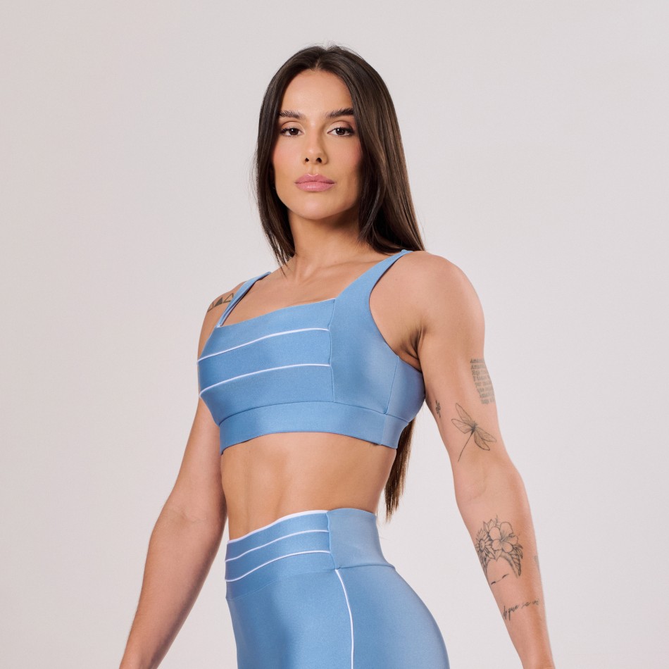 • Top Sustentação Azul Acinzentado com Friso Off White