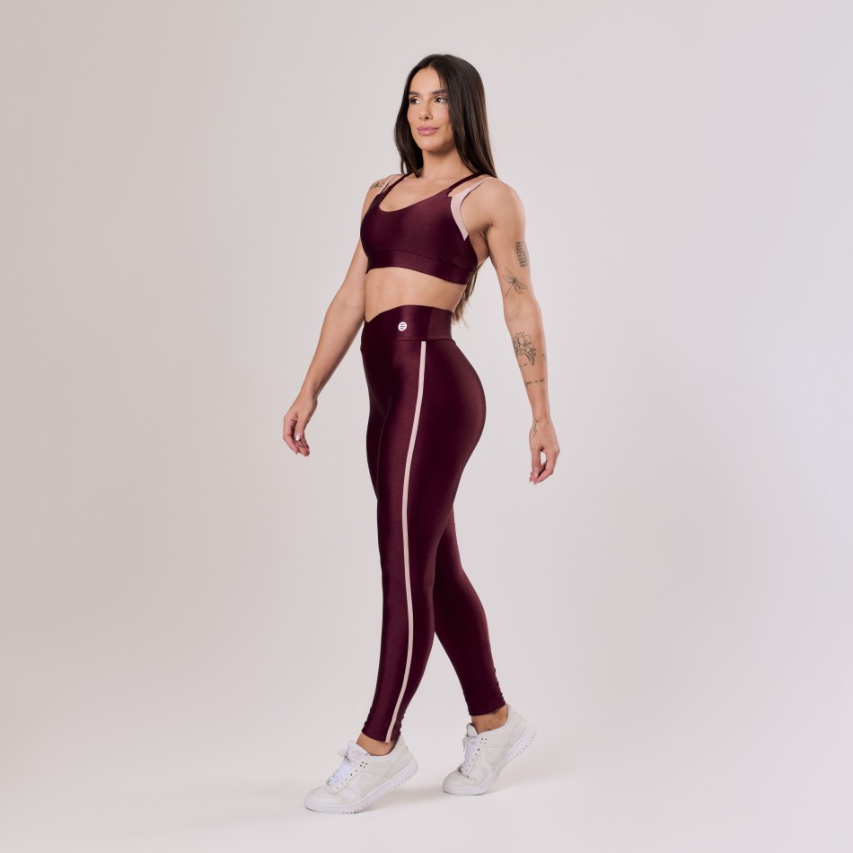 A Calça Legging vinho com Cós Transpassado e Detalhe Rose traz um design moderno e elegante, valorizando a silhueta com muito estilo. O cós transpassado adiciona um toque diferenciado à peça, enquanto o detalhe rosé garante delicadeza e sofisticação ao visual.