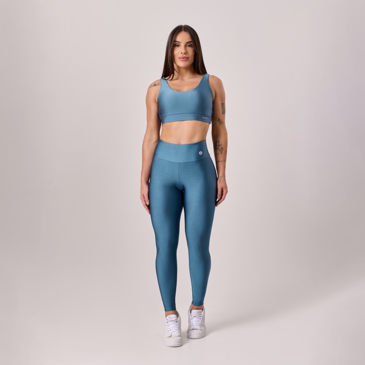 A Calça legging de poliamida na cor azul Porcelana com cós anatômico veste firme e modela com média compressão, oferecendo suporte e conforto para treinos de musculação, funcional e para o dia a dia. O tecido com proteção UV garante segurança ao ar livre e sensação de estabilidade em cada movimento.