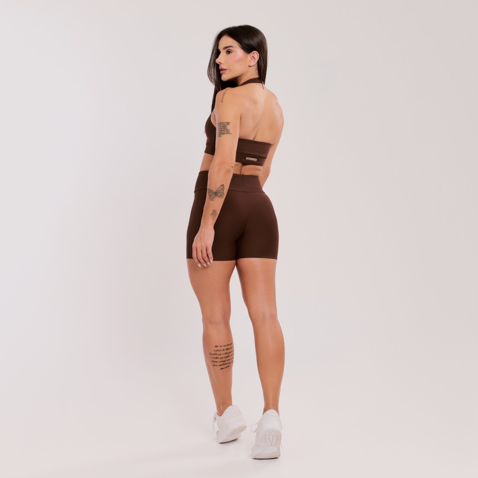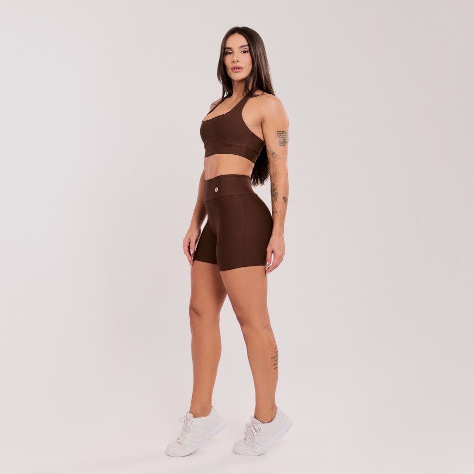 O tecido de poliamida com elastano garante toque macio, elasticidade e caimento suave, enquanto a tecnologia sem costura proporciona conforto extra e acabamento clean.