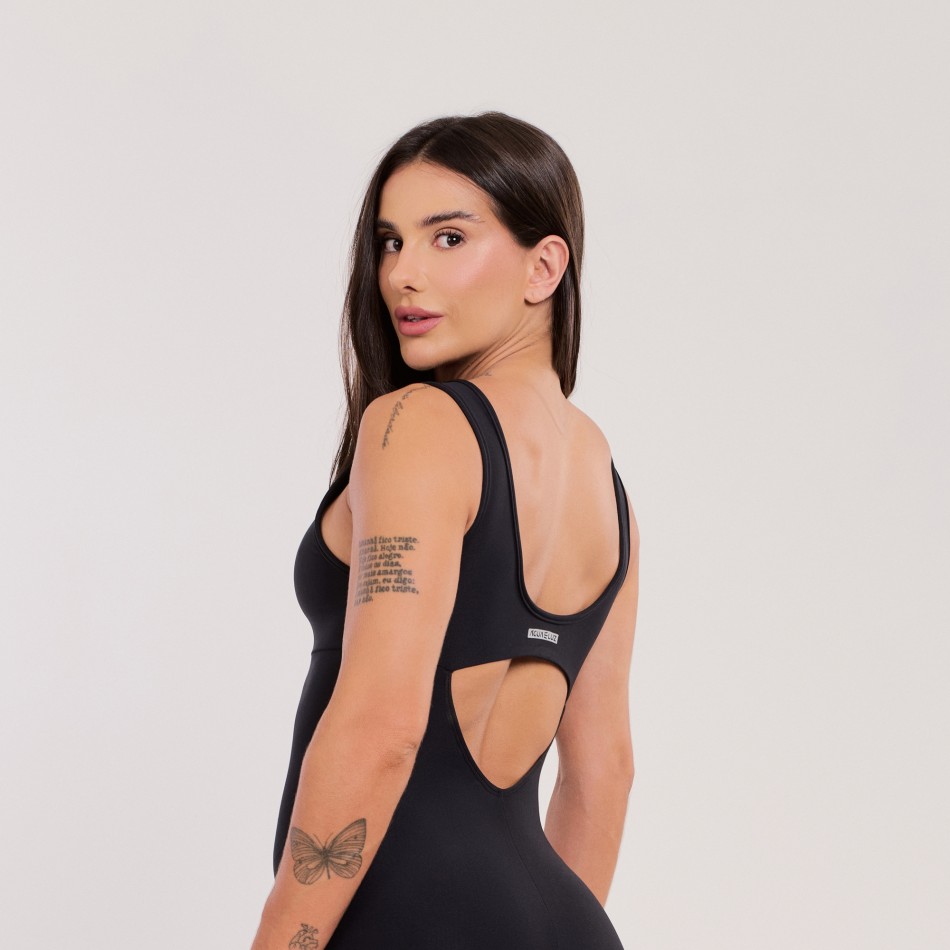 O Macacão Básico com Alças Largas Preto une praticidade, conforto e um visual moderno. Com modelagem que valoriza o corpo, ele é perfeito para treinos e também para o dia a dia.