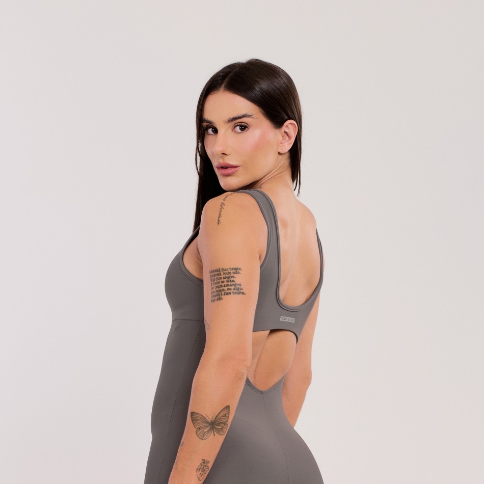 O Macacão Básico com Alças Largas Cinza Urbano une praticidade, conforto e um visual moderno. Com modelagem que valoriza o corpo, ele é perfeito para treinos e também para o dia a dia.