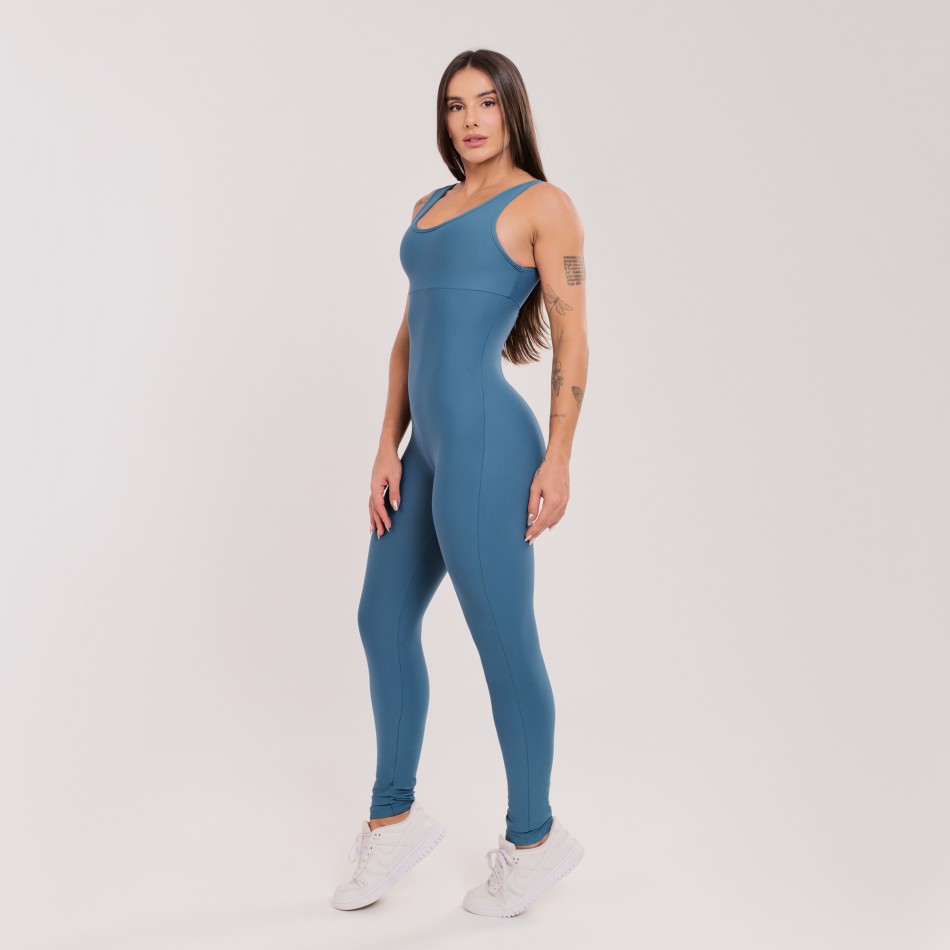 O Macacão Básico com Alças Largas Azul Safira une praticidade, conforto e um visual moderno. Com modelagem que valoriza o corpo, ele é perfeito para treinos e também para o dia a dia.