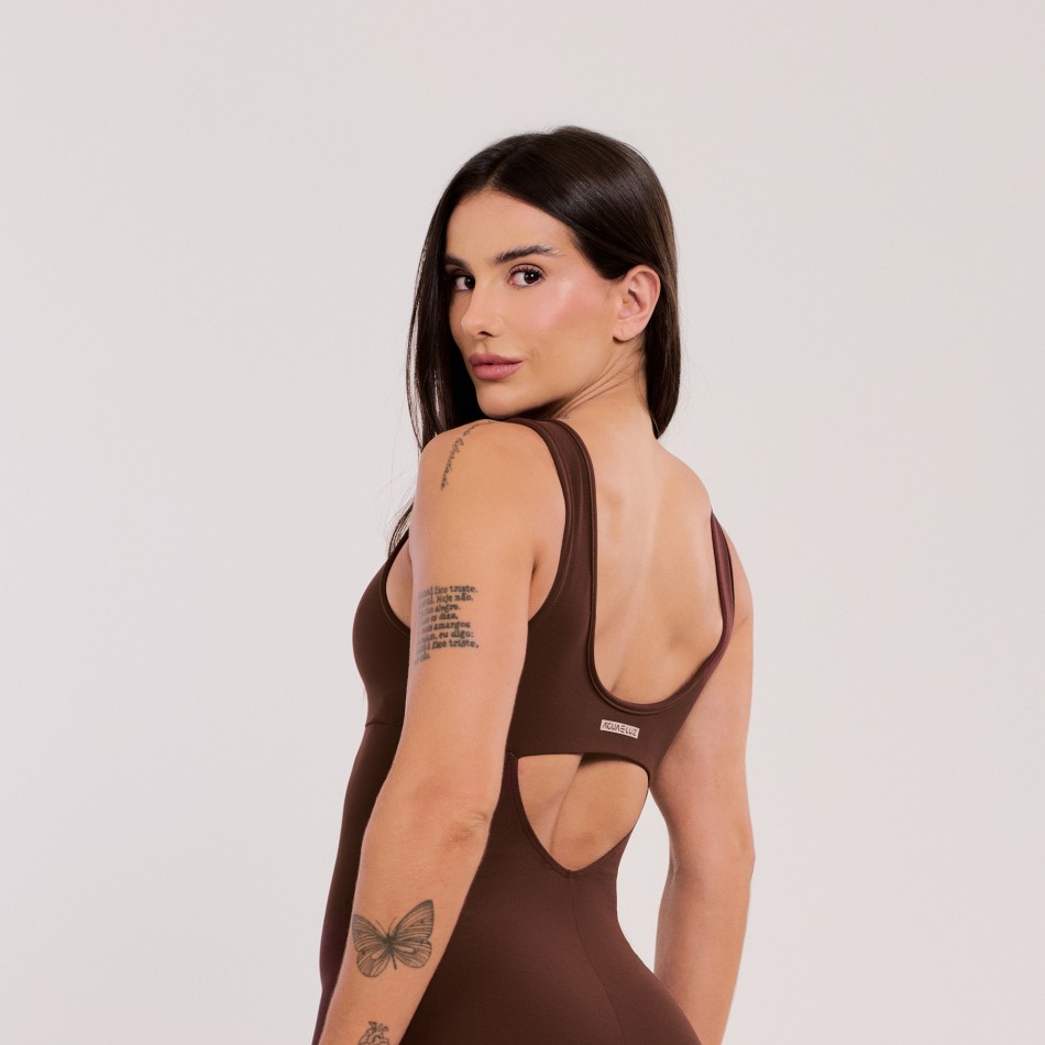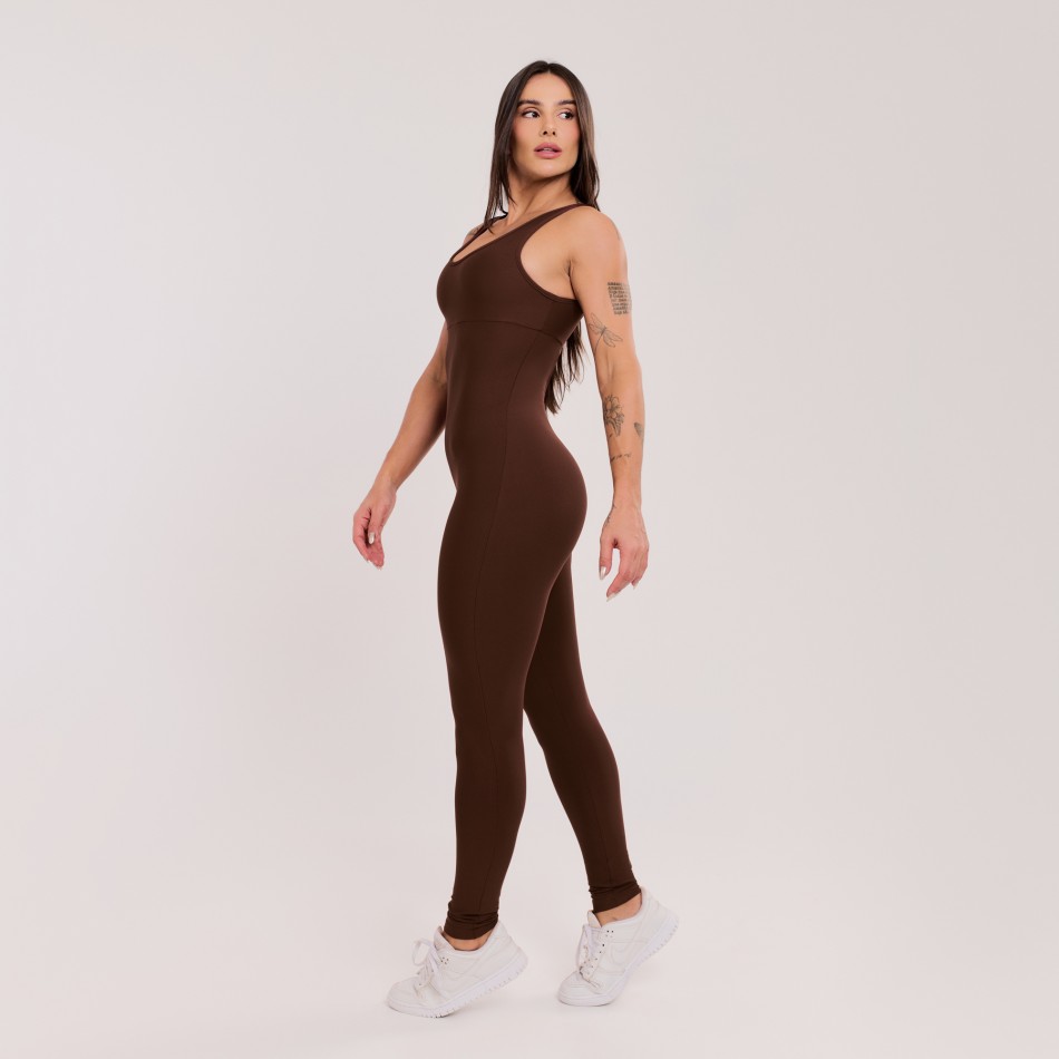 O Macacão Básico com Alças Largas Marrom Escuro une praticidade, conforto e um visual moderno. Com modelagem que valoriza o corpo, ele é perfeito para treinos e também para o dia a dia.