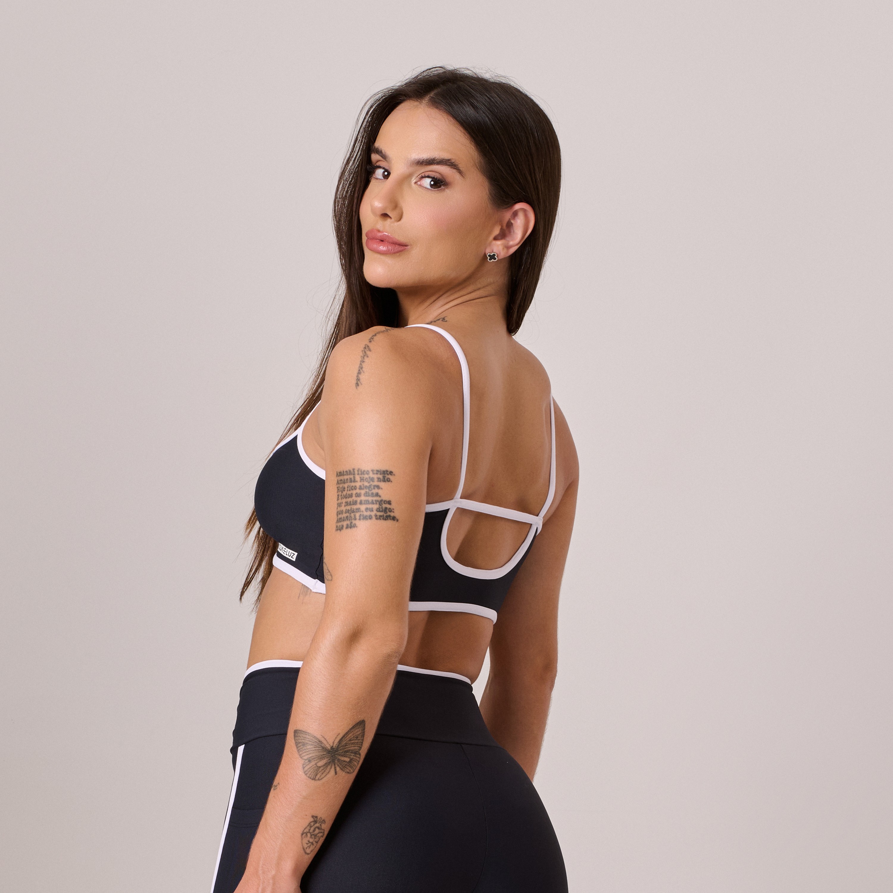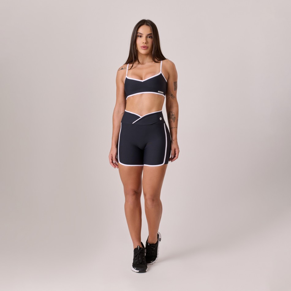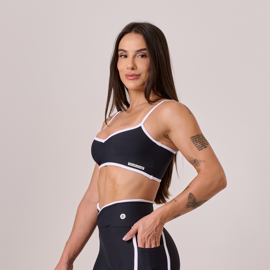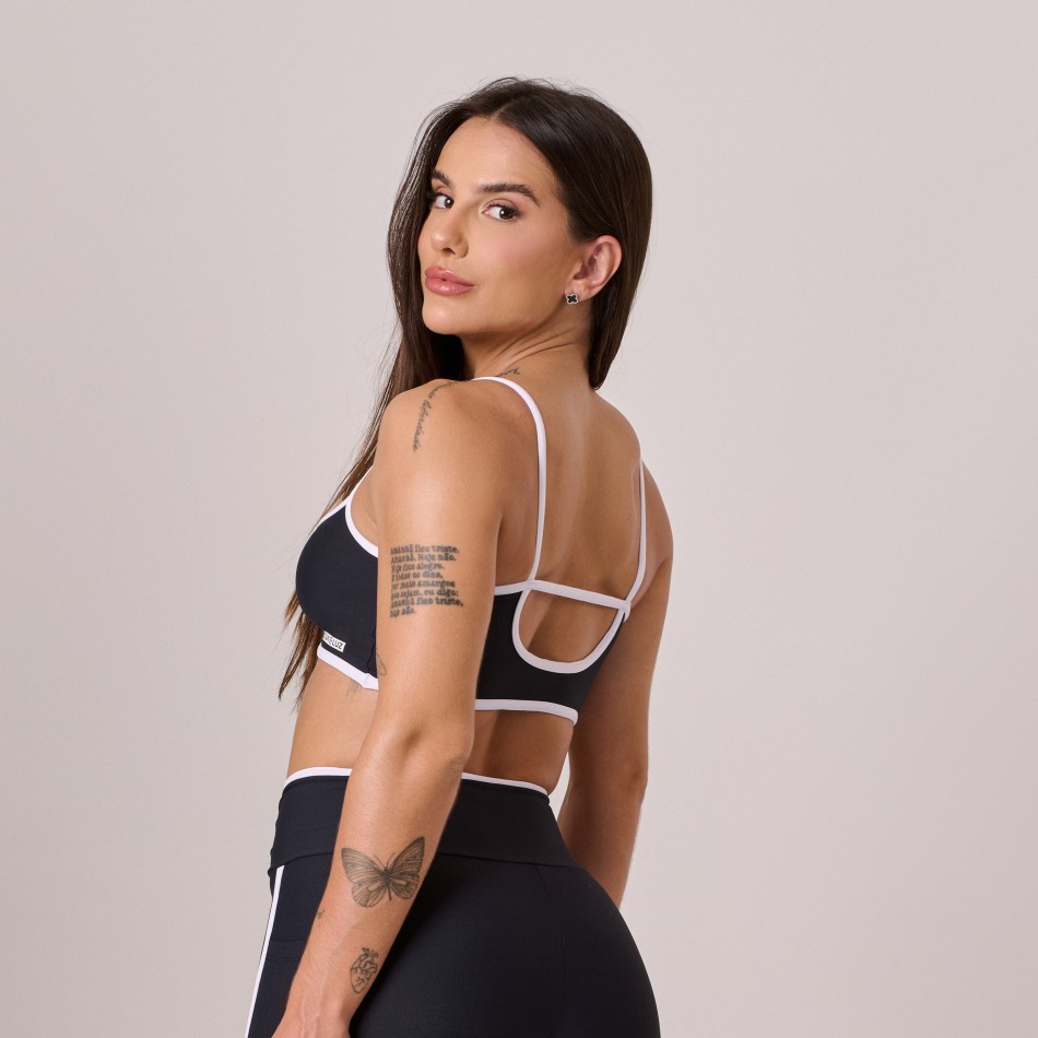 Toppoliamidacomfortpretocomviésbranco.Minimalista,eleganteecheiodedetalhessutis,onossotopcombinaconfortoabsolutocomumtoquedeestilo.