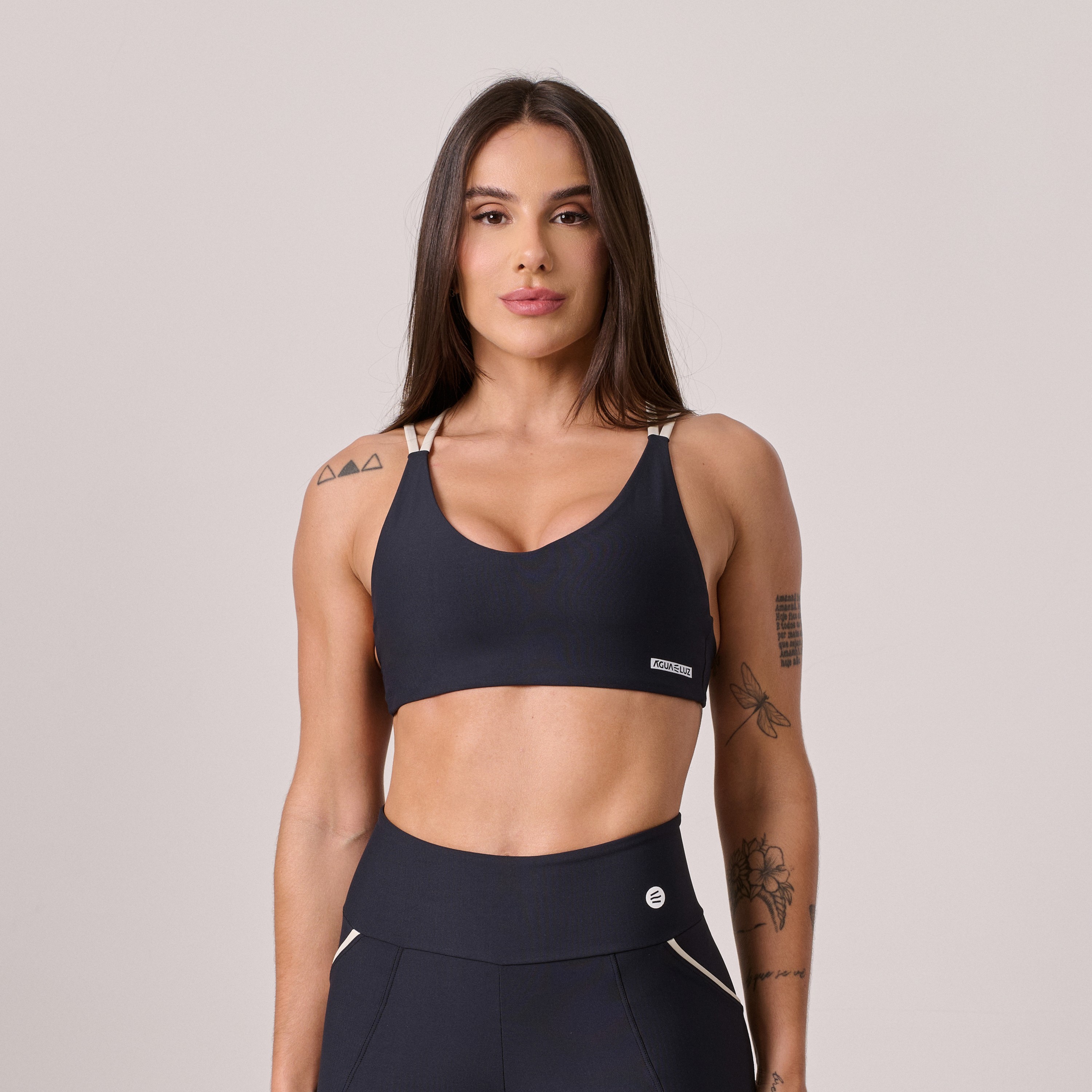 TopalçaduplapoliamidaComfortpretocomdetalhebegecombinaliberdadedemovimentocomumtoquedesofisticação.Minimalista,eleganteeconfortável.