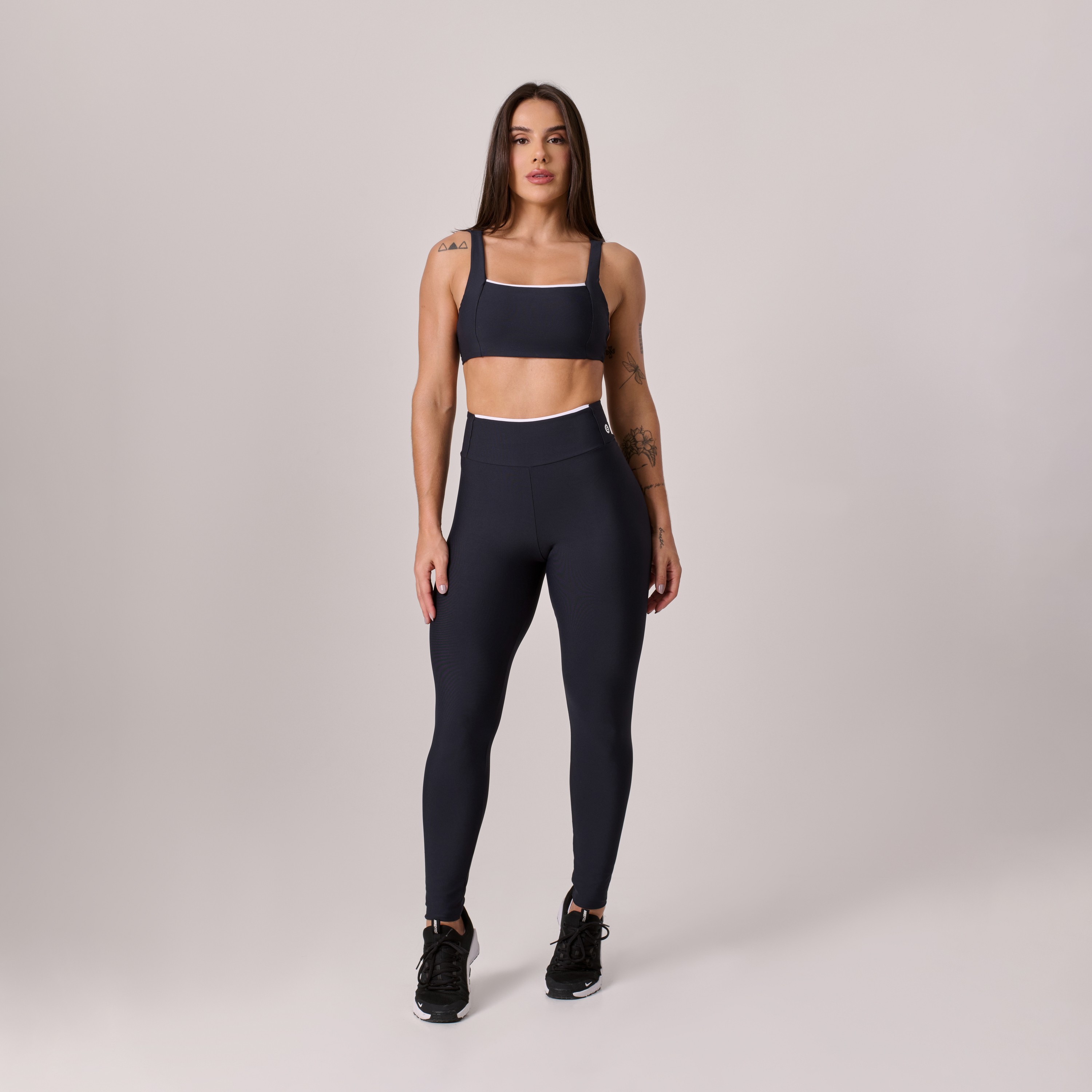O detalhe branco adiciona contraste elegante e minimalista, tornando a legging perfeita para treinos, dia a dia ou combinações casuais com estilo.