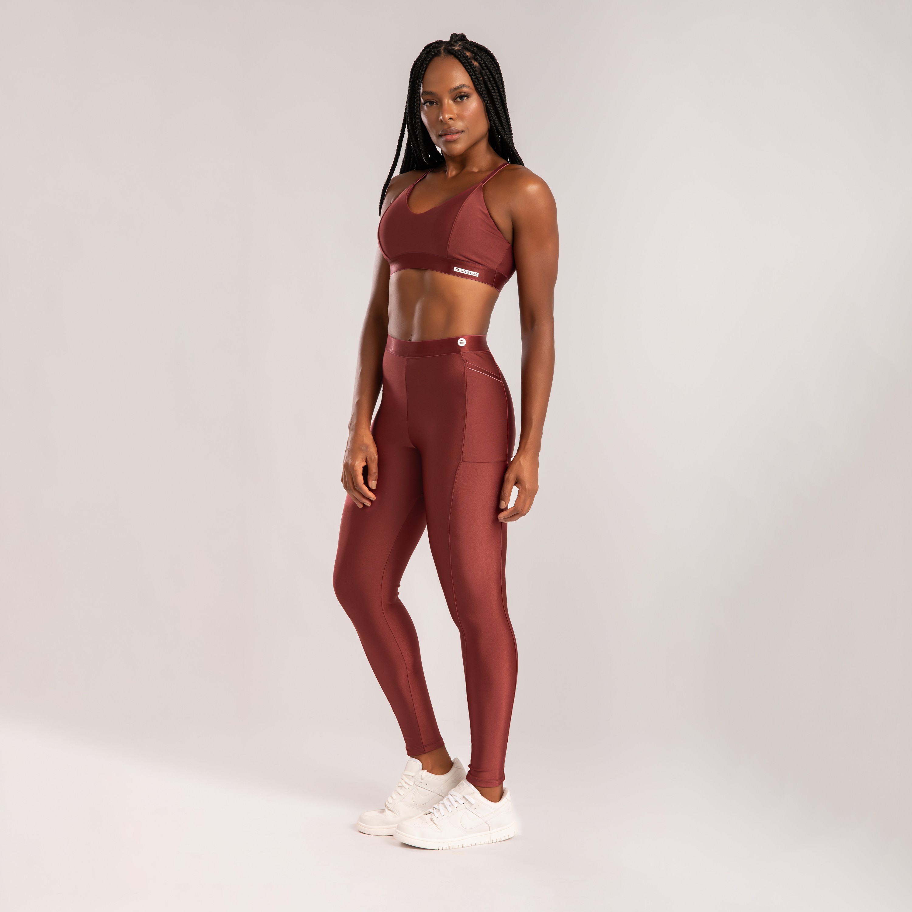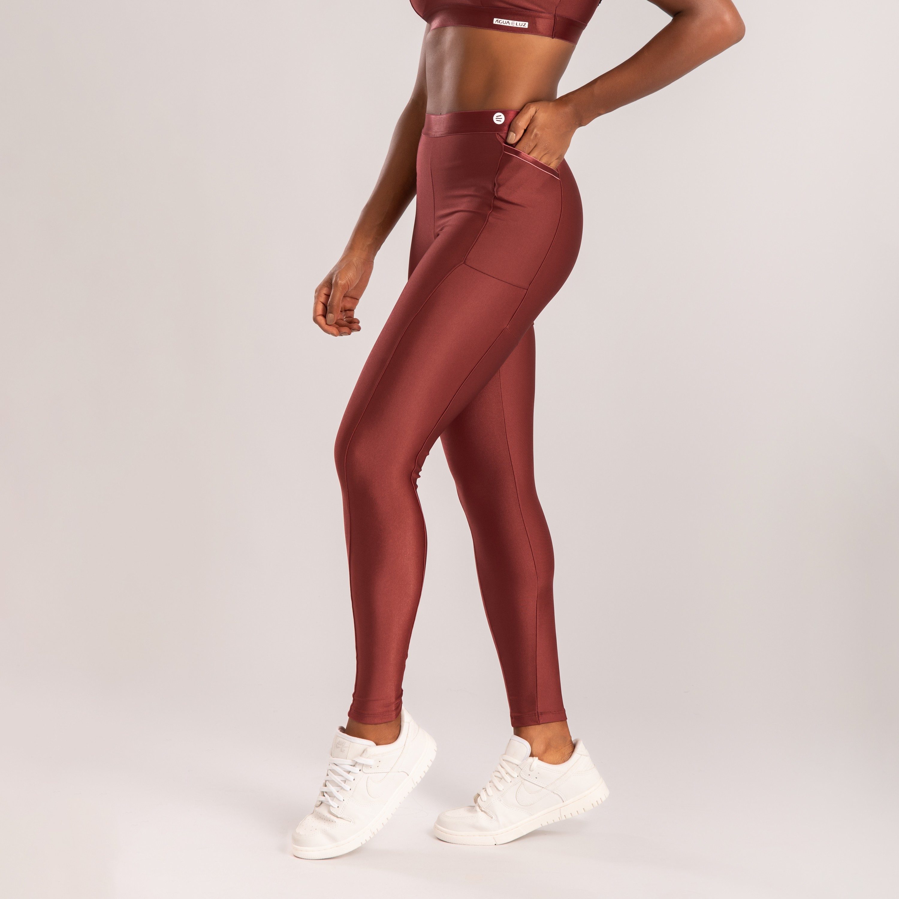 A calça legging poliamida marsala une conforto, praticidade e um visual moderno em uma única peça.