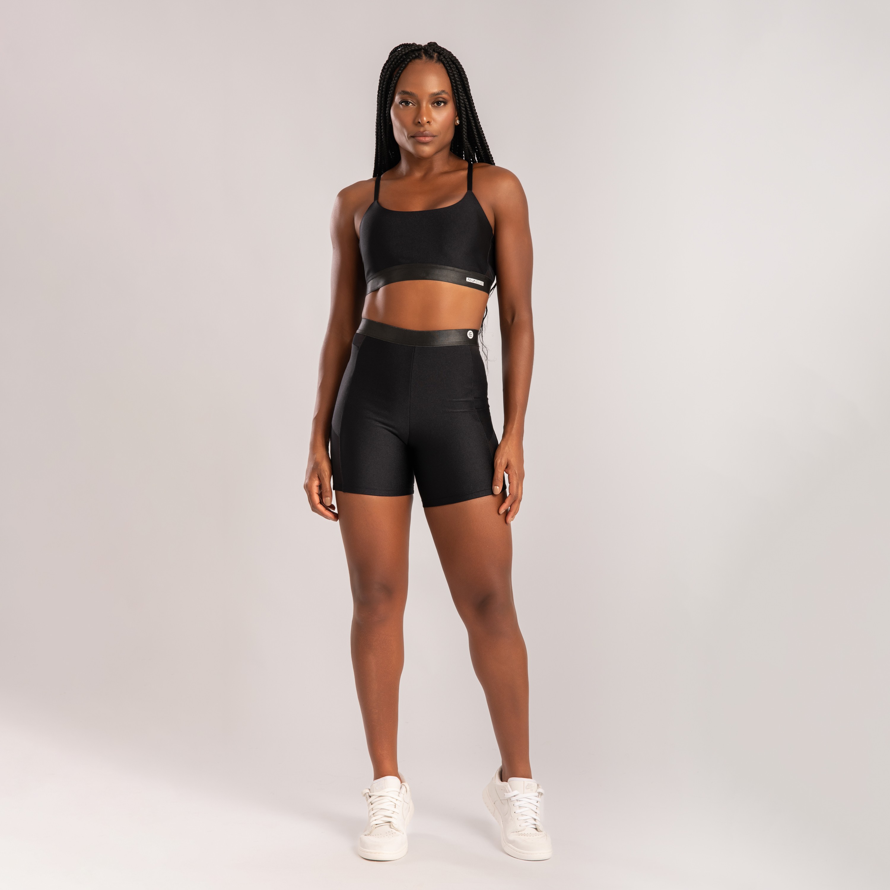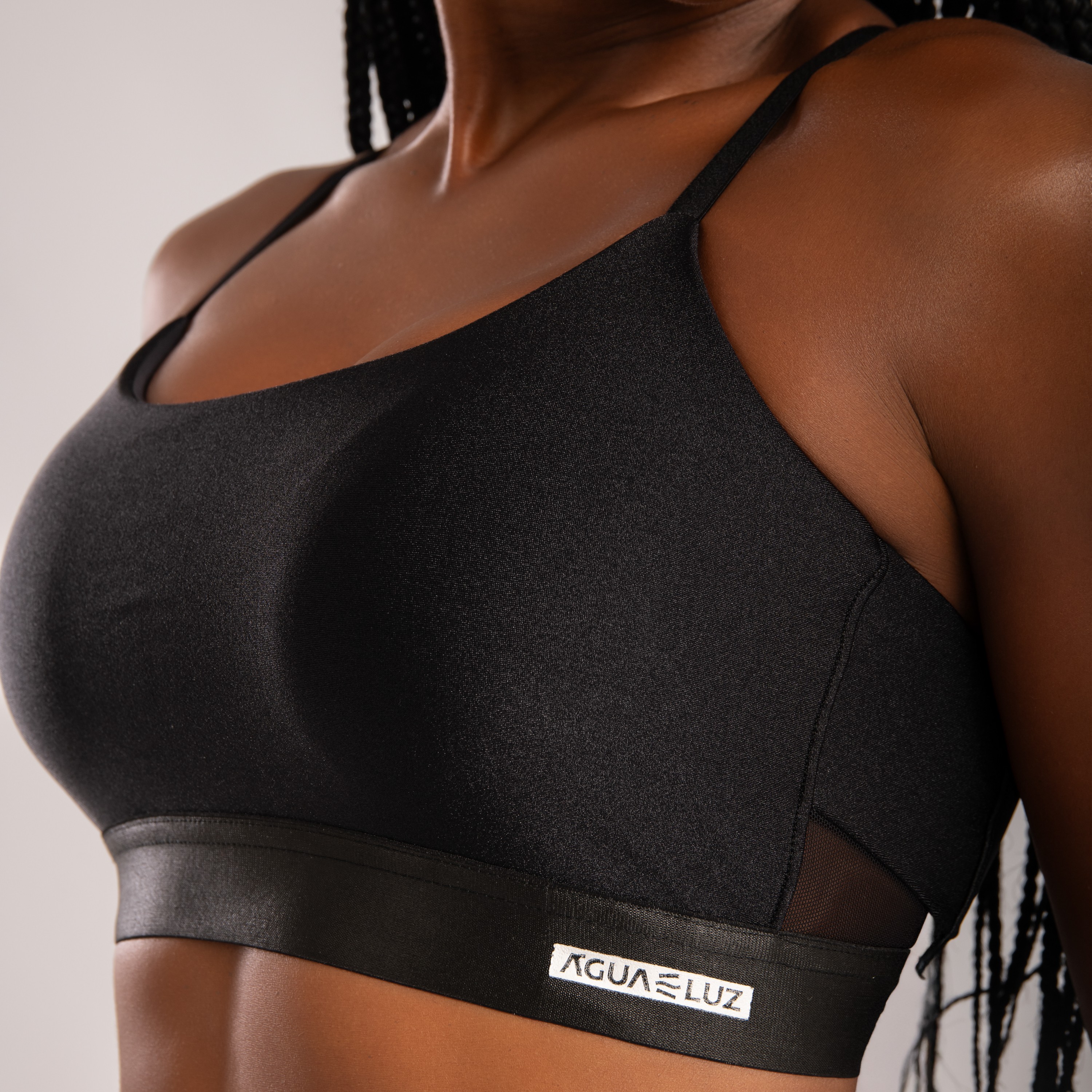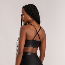 Top camiseta em poliamida na cor preta, com detalhe em tule que traz delicadeza e sofisticação ao visual. Possui toque macio, caimento leve e conforto absoluto, valorizando o corpo com elegância. Uma peça versátil, ideal para treinos leves ou para compor looks modernos no dia a dia.
