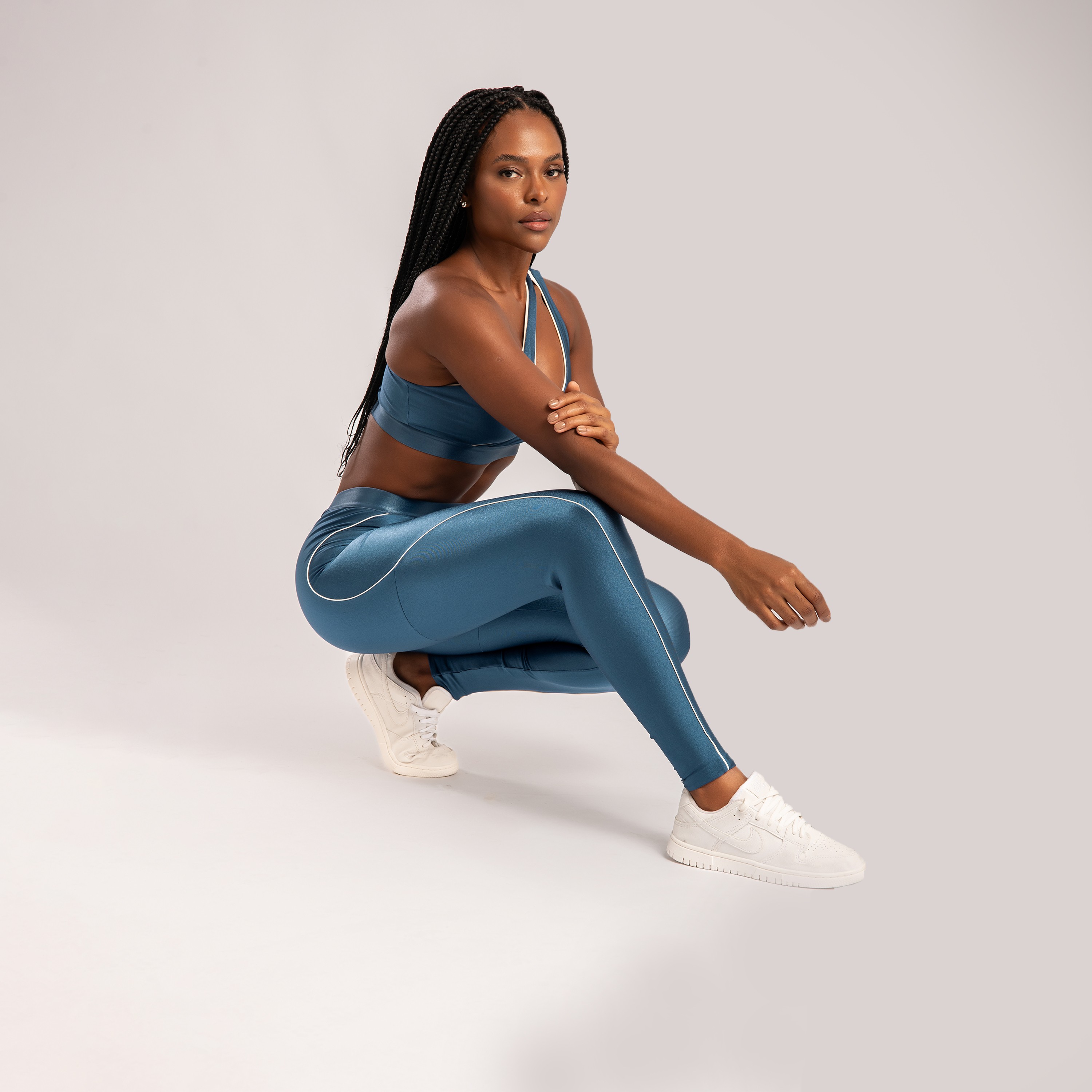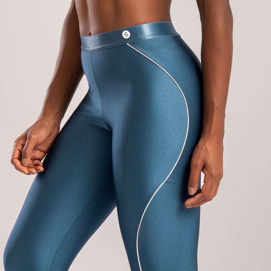 Calça legging em poliamida na cor azul índigo, com friso off-white que adiciona um visual esportivo e marcante à peça. Confeccionada em poliamida de alta qualidade, oferece excelente elasticidade, conforto e sustentação, valorizando a silhueta com segurança. Ideal para treinos ou para compor looks casuais cheios de estilo.
